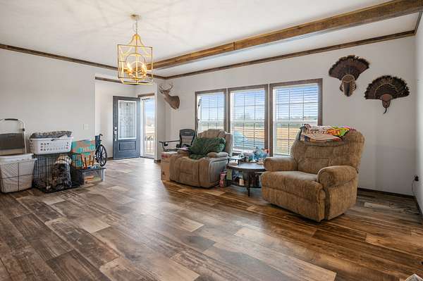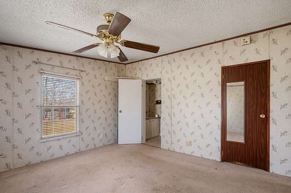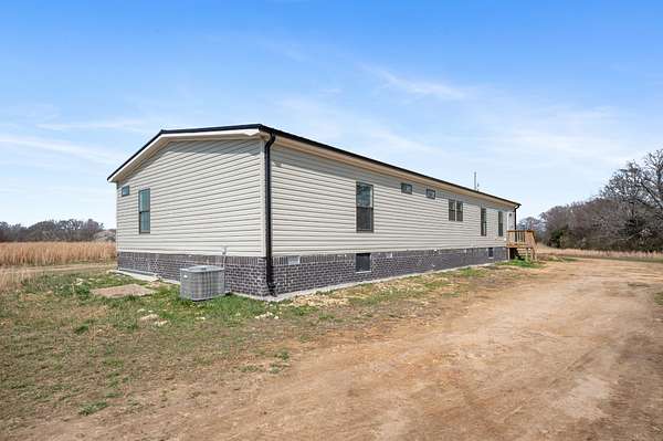 The second residence is a 2,115 sq ft double-wide mobile home on a permanent foundation with 3 bedrooms and 2 bathrooms. This home features solid oak cabinets, a family room in addition to the main living room, covered porch, and gas heaters for backup heat. A 2-car garage with basement area beneath provides excellent storage or workshop potential. Sold as-is, where-is.