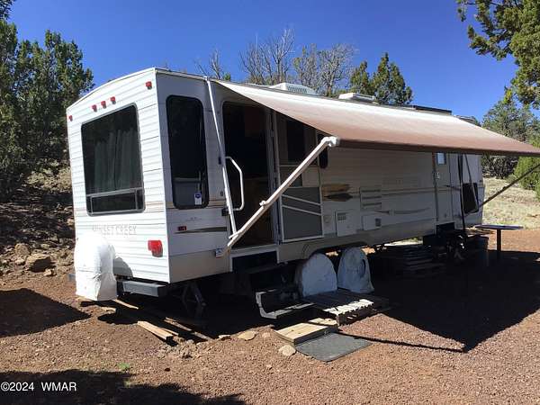 Head East from Show Low on the Deuce of Clubs. Drive appx 10 miles to the Y. Turn left at the Y, and turn Left/North on Stanford Rd. Drive appx 4 miles, and turn Left at directional sign N8167. Drive East until you come to a gate and Realtor sign. Park, use contractor box to access keys for gate and cabin.