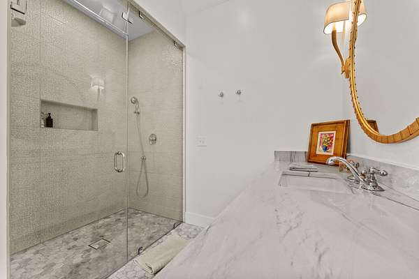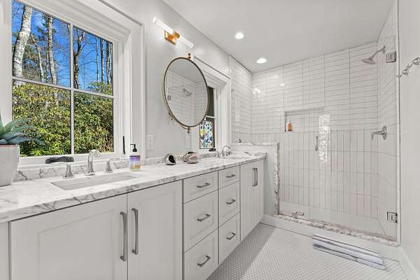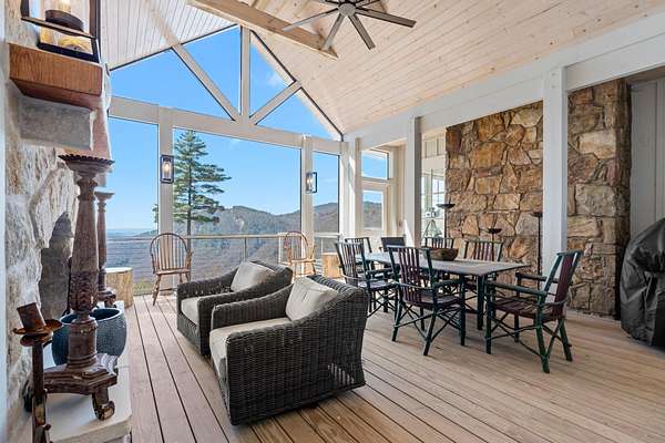 Not often do you find the amenities that this fully remodeled, but basically new construction, Sagee Mountain home provides. With a convenient location less than two miles from the bustling and picturesque Highlands village, the home additionally provides the ideal true mountain feel your area home deserves. Look over the back yard to a stunning 50-mile vista of the layered hills below, which includes Satulah, Fodderstack and a range of expansive mountains. A lovely natural creek and waterfall ranges over the property boundary line with its sounds and visibility available from most areas of the house. There is a lovely, terraced backyard and outbuilding rustic cabin which lend themselves to gardening and further personal improvements. The house is like new with a semi-open floor plan with everything you need on the main level. There is a wonderful stone fireplace the graces the Great Room and a wall of windows to soak in the expansive view. Walk onto a covered Carolina room ( you will live out there all summer) that has another wonderful stone fireplace. The screened area connects to the large deck and Great Room. The Primary Suite is on the main level, with a bath fit for royalty. This bath includes his and her water closets, his and her sink areas, heated floor, sculpted tub and a steam shower. The main level additionally contains two powder rooms making guest entertaining and visitor comfort very convenient. The guest lower level, accessed by a wide and beautiful easy use staircase, has two separate bedrooms, each with its own en-suite bath. Then, there is an additional den area that has its own separate bathroom and can serve as an additional third bedroom on the guest lower level. No Jack and Jill here A two-car spacious garage is only steps from the kitchen door, by way of a covered walkway. The garage has unfinished upper-level space that may serve as an additional guest area or an art studio. This is one of the nicest, best located, Mountain View, creek and waterfall homes on the market. The location of the home is within the city, which provides all city services, including water and twice a week trash pick-up. And this home Includes the modern convenience of a dedicated fiber optic line run to the house for internet service.