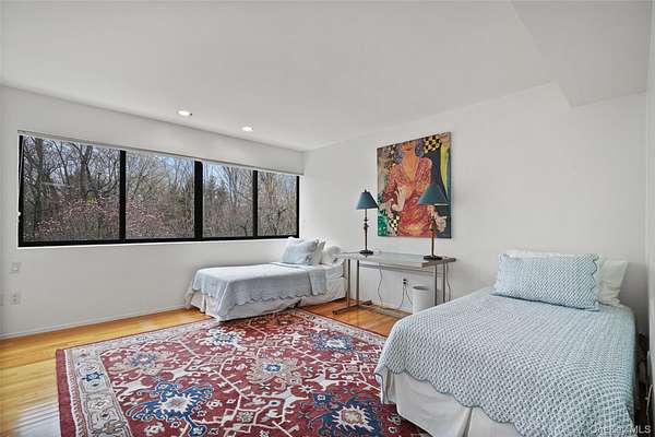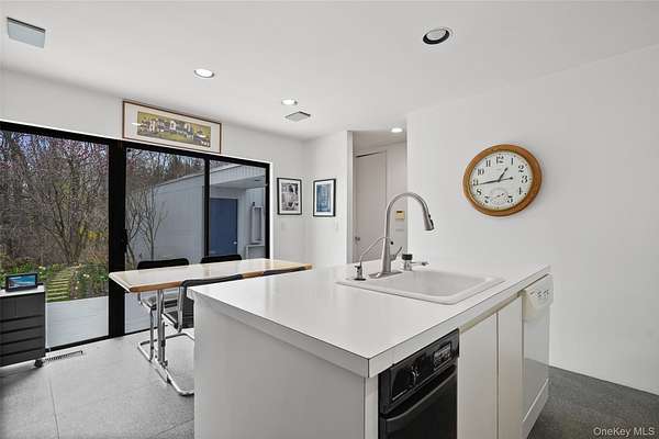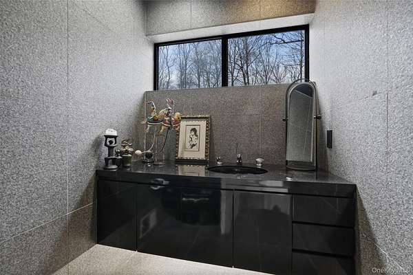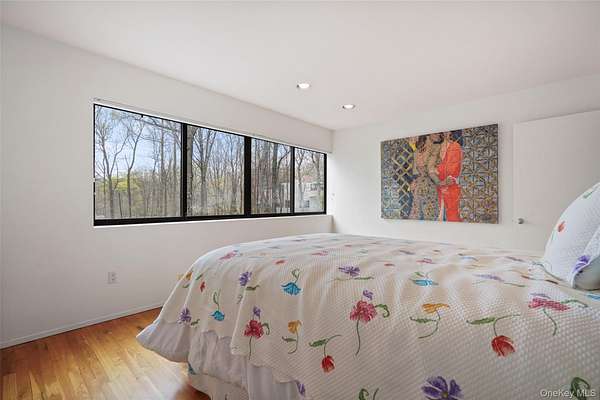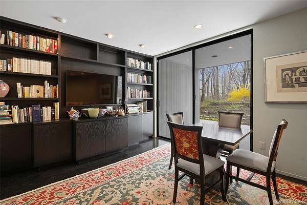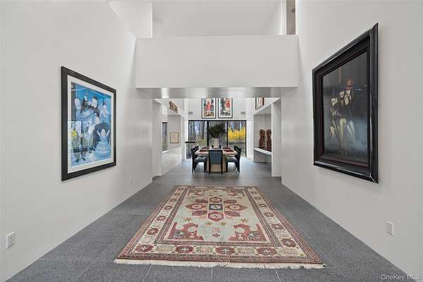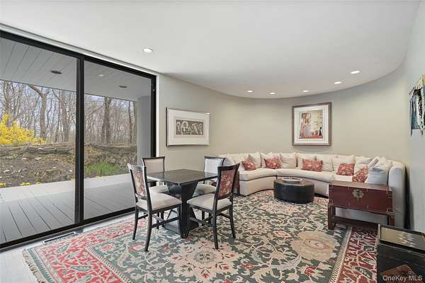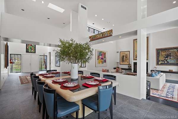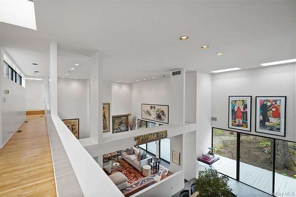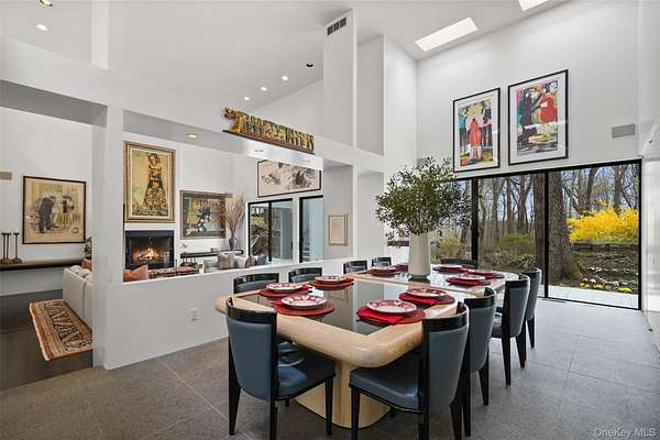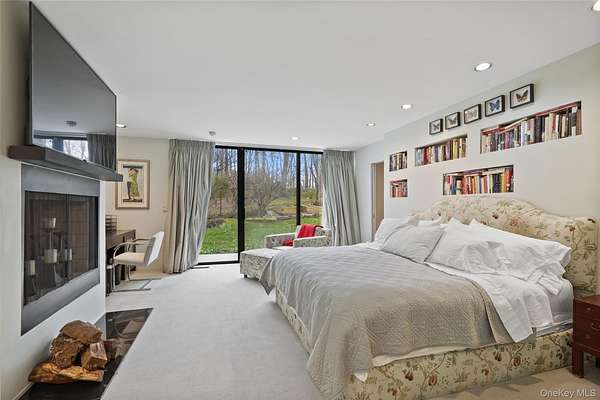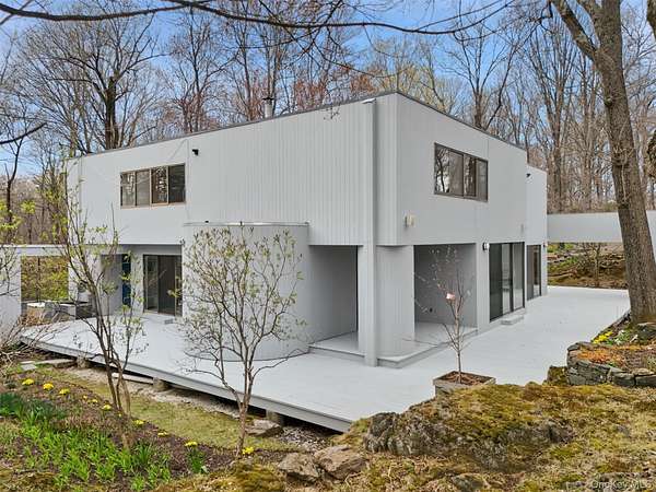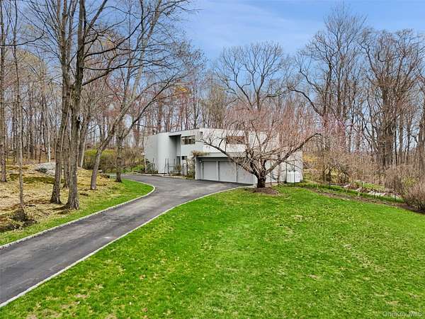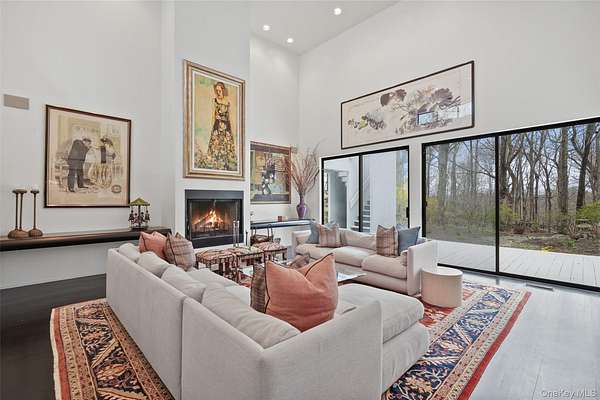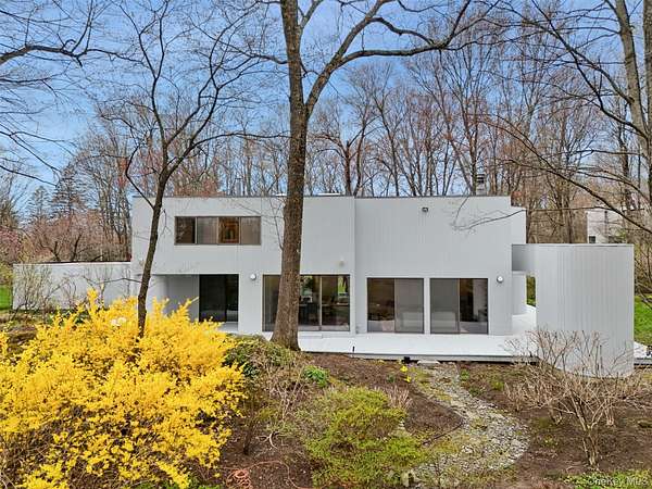 STUNNING DESIGN. Fabulous estate area location. Over two serene acres with mature trees and flowering shrubs. Absolutely gorgeous flowering gardens with remarkable plantings. Remarkable Modern Estate-- the perfect country house impeccably maintained and updated. Light airy, open rooms with walls of crisp white, gleaming floors, high ceilings and walls of windows. Impressive skylit Entrance Hall. Dramatic Living Room with high ceiling, fireplace and doors to rear deck. Open Dining Room perfect for elegant entertaining. Well-designed Kitchen with white cabinetry, center island and breakfast area with doors to deck. Comfortable Family Room with built-ins. Private, first-floor Primary Suite with fireplace, two walk-in closets and two Baths. Three additional Bedrooms. Central air conditioning and whole-house generator. First time offered in years. Rare!