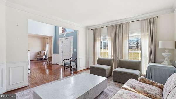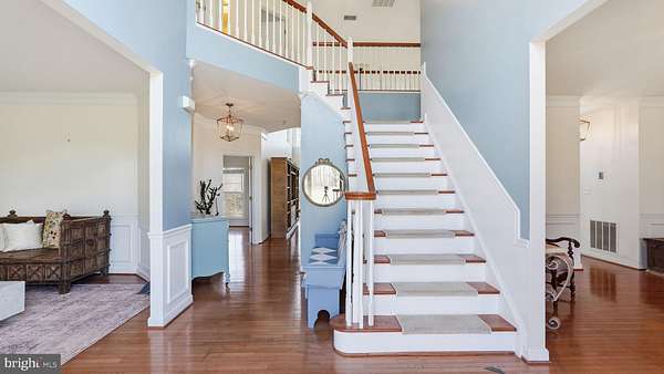 - Breakfast Area, Chair Railings, Crown Moldings, Dining Area, Double/Dual Staircase, Family Room Off Kitchen, Gourmet Kitchen, Open Floor Plan, Primary Bath(s), Table Space Kitchen, Upgraded Countertops, Wainscotting, Wood Floors