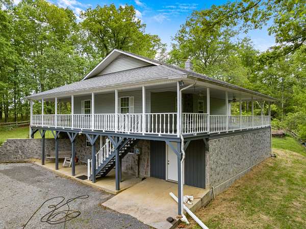 Charming 2-bedroom, 2-bath home on 2.48 surveyed acres in a peaceful country setting. Built in 1995, this well-maintained home features hardwood and tile floors on the main level and a spacious kitchen that is open into the living area. The primary bedroom on the main level features a walk-in cedar closet and ensuite bath. Downstairs, the finished basement has tile and vinyl flooring and a kitchenette. Enjoy relaxing and entertaining on the wrap-around covered porch. The property includes a detached carport, several outbuildings, a newer metal barn, and some established perennial landscaping. 670 Bulls Gap Saint Clair Road is ideal for those seeking space, comfort, and rural charm.