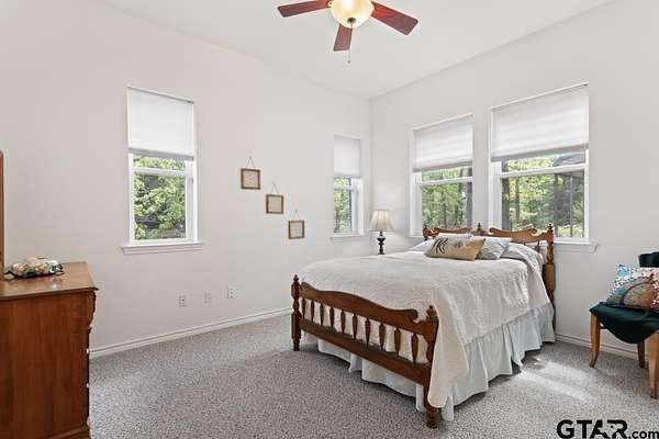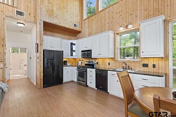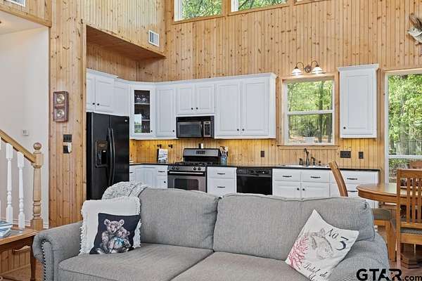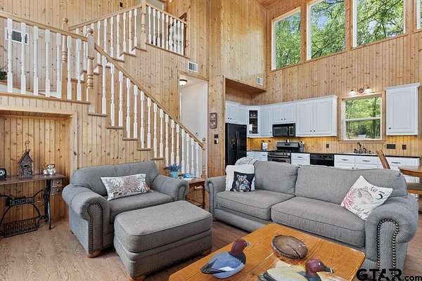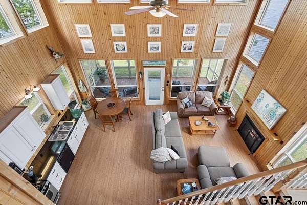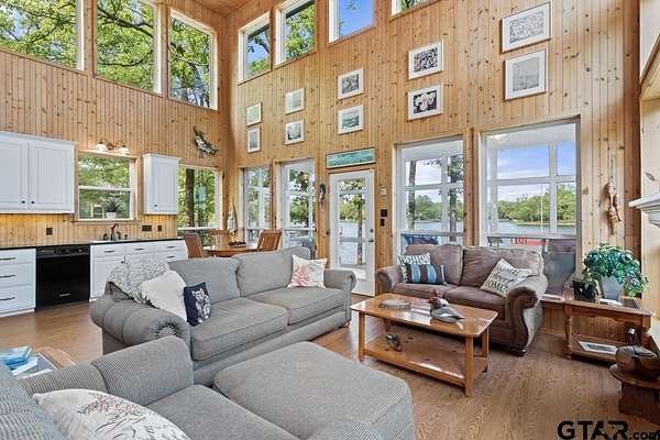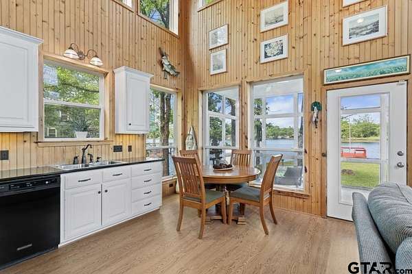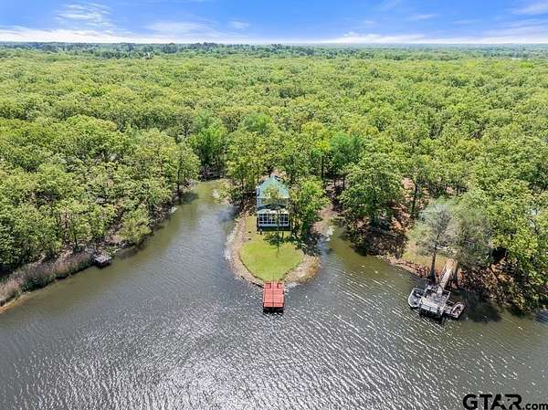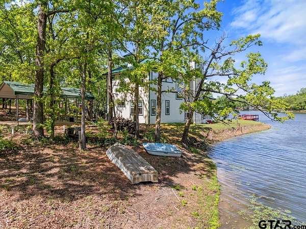 Hidden Gem in Alba, Texas!! Tucked away along the tranquil shores of Lake Louise in Alba, this adorable lakefront retreat offers the perfect blend of rustic charm and peaceful seclusion. Located within a small, private fishing club and nestled in a quiet lake community. This property is a true East Texas escape and is conveniently located to the famed Lake Fork!!! This 2-bedroom, 2-bath home and setting feels like stepping into a scene from On Golden Pond, with serene water views from nearly every window and a relaxed, natural setting ideal for fishing, kayaking, or simply watching the light dance across the lake. The open-concept living area invites cozy gatherings, featuring a wood-burning fireplace and expansive picture windows that frame the water while maintaining privacy. The kitchen is warm and inviting with pine bead board walls and ceilings, complemented by a comfortable guest room with a large closet and a spacious upstairs primary suite complete with a huge walk-in closet and en-suite bathroom with shower. Enjoy mornings and evenings on the lovely screened-in porch overlooking the lake, or walk down to the expansive dock for a convenient fishing trip. Other features include a large laundry closet, pantry, built-in book cases in primary suite, two storage sheds and carport. Conveniently located within easy reach of the Dallas-Fort Worth Metroplex and Tyler, and Lake Fork. This hidden getaway is perfectly suited as a weekend escape, full-time residence, or Airbnb. Need a break? Come experience the quiet beauty of Lake Louise—an East Texas gem where time slows down and nature takes center stage.