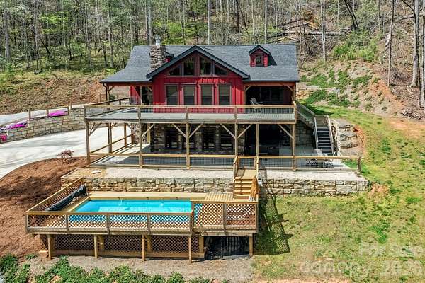 Beautiful Lake Lure home on 27 private acres, just minutes to Lake Lure and Ingles Grocery. This 3 bedroom, 3 bath home sits outside the city limits and offers the feel of a private country estate with easy access to shopping, dining and recreation. Inside you'll find soaring 15 ft ceilings, multiple stone fireplaces, granite counters and an open, light-filled layout designed for comfortable living and entertaining. Outdoor living is exceptional with extensive Trex decking, 2 covered porches, patios and a pool. A 3 car garage, barn and whole-house generator provide ample storage, hobby space and peace of mind. If you're looking for privacy, convenience and room to gather, this Lake lure property is a must see at $849,000.