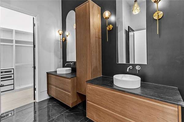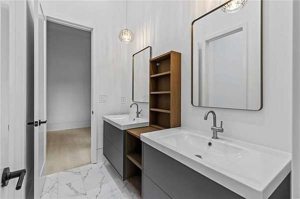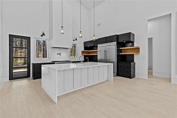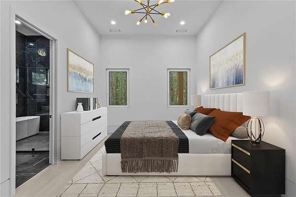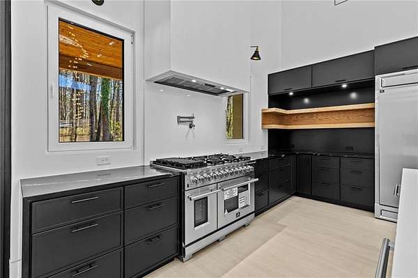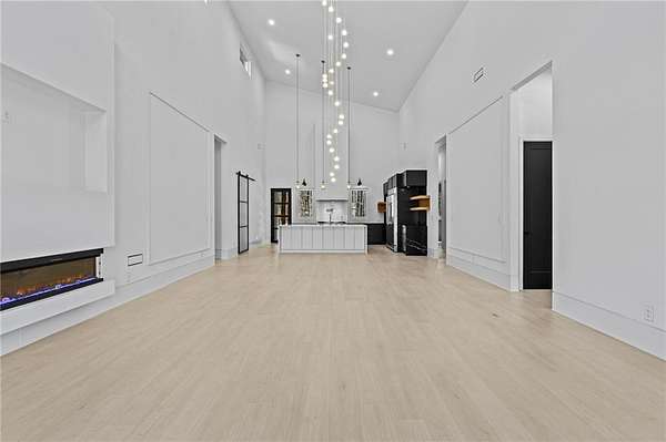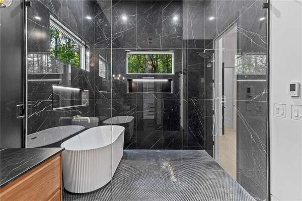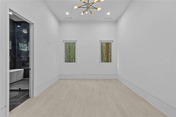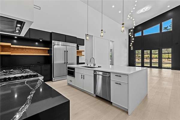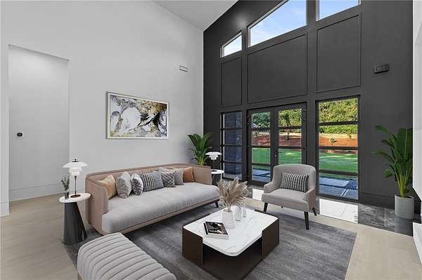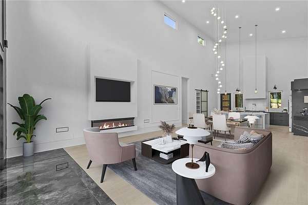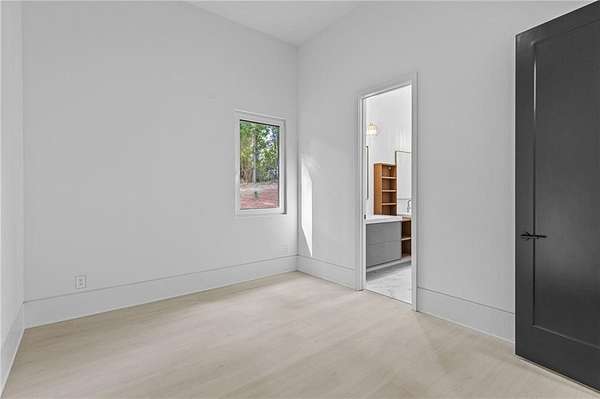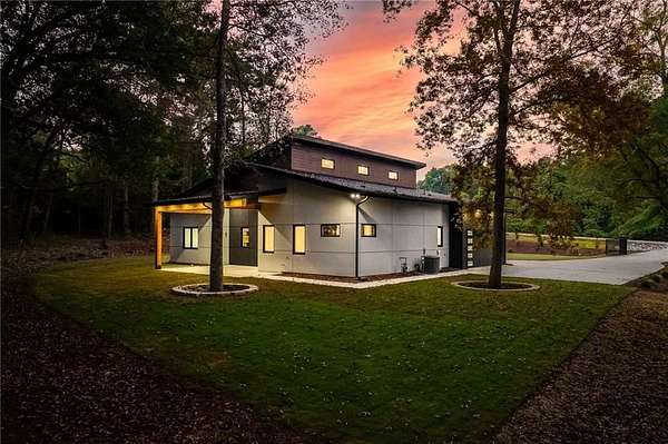 Luxury, privacy, and direct access to nature - welcome to 670 Loganville Highway. Set on just over 4 gated and fenced acres and surrounded by the beauty of Fort Yargo State Park, this exceptional estate offers a rare blend of craftsmanship, comfort, and lifestyle. Just steps away, enjoy direct access to scenic hiking and biking trails, plus the peaceful lake nearby. Built with longevity in mind, the home showcases artisan siding, natural stone, and stucco, protected by a liquid-applied water and air barrier with Tyvek wrap for lasting durability. A wide driveway lined with lush sod creates a welcoming entrance with plenty of parking for family and guests. Inside, soaring 24-foot ceilings and abundant natural light make an unforgettable first impression. The chef's kitchen is designed to impress, featuring granite countertops, premium Forno appliances, custom cabinetry, and a large island ideal for gathering and entertaining. The open-concept living and dining spaces flow beautifully for both everyday living and special occasions. The primary suite offers a private retreat with a spa-inspired bath, heated tile floors, granite vanities, and an oversized walk-in shower. Throughout the home, you'll find thoughtful upgrades including 12mm luxury vinyl plank flooring, integrated trim details around custom light switches and baseboards, and 5/8" drywall for added strength and sound control. Spray-foam insulation throughout, including 8-10" along the roofline, provides exceptional energy efficiency and year-round comfort. Additional features include a tankless water heater, whole-home water filtration system, pre-wiring for security cameras, built-in garage shelving, and a full irrigation system. The rear covered porch is built for relaxing and entertaining, complete with solid cedar columns, tongue-and-groove pine ceilings, and a natural gas hookup for your grill. From here, enjoy peaceful views of your private acreage and surrounding parkland. The left side of the lot was intentionally designed to allow for a future split driveway and offers excellent potential for another home, a dream garage or workshop, RV storage, or a private in-law setup.