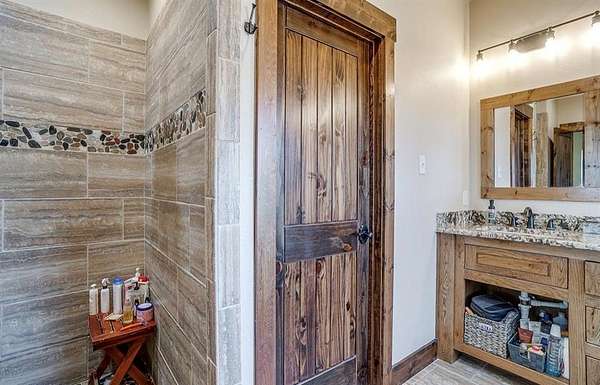 - Decorative Lighting, Granite Counters, Kitchen Island, Natural Woodwork, Open Floorplan, Pantry, Walk-In Closet(s)