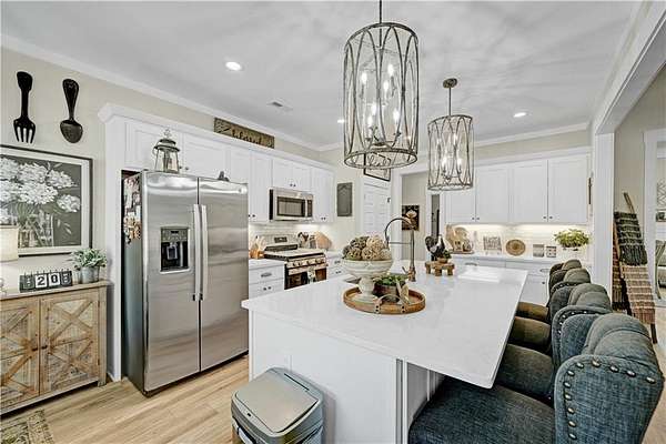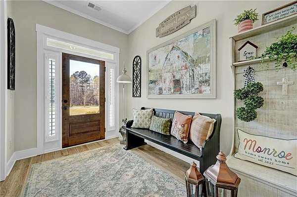 Discover modern luxury in this stunning 2.2-acre, 5-bedroom, 4-bathroom ranch home with a spacious loft suite, located in the highly sought-after Monroe area close to shops, restaurants, historic downtown Monroe and its parks, activities, outdoor market and entertainment. From the grand front porch, you step inside to find a bright gourmet kitchen, big quartz island, breakfast area and a formal dining area, all blend seamlessly into the open family room with a brick fireplace. The primary suite, on one side of the main floor for privacy, boasts a spa-like bathroom with double vanities, a stand-alone bathtub, a separate shower, and a walk-in closet. On the other side of the main floor, 2 secondary bedrooms share a jack-n-jill bathroom, and a 4th bedroom with a 3rd full bath. The amazing loft suite has its own full bath and closet, a perfect haven for a teen child or guests. Gorgeous LVP flooring enhances the home's contemporary charm and durability for pets and foot traffic. You will love the luxury plantation shutters throughout the whole house, adding a touch of beauty and elegance to the home vibe. An attached 2-car side-entry garage offers convenience and practicality. Outside the house is the show-stopping, professionally designed landscape that steals your heart. Enjoy outdoor living with a morning coffee on the covered back porch, overlooking a private, estate-sized backyard, where you find a beautiful, decorated storage barn that keeps all your toys, machines and extra stuff safe and dry. Built in 2023, this house has everything, from appliances to roof, in top conditions for you to enjoy for years to come. NO HOA. Preferred lender offers $2500 incentives.