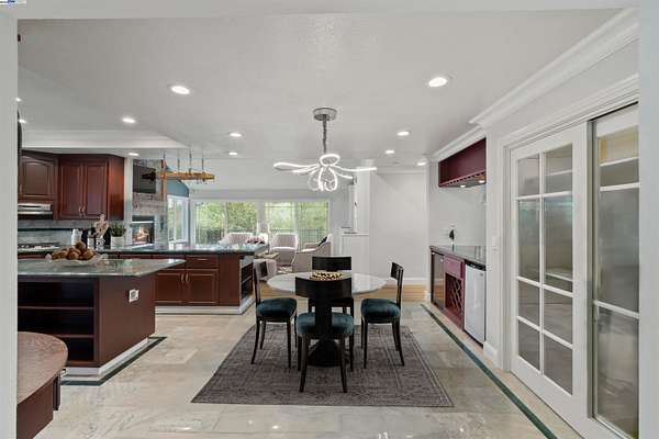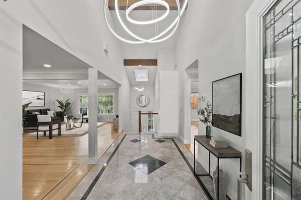 Nestled on 7+ private acres, this gated estate offers stunning panoramic views and unparalleled privacy. A long, elegant driveway leads to lush landscaping and a serene fountain at the front entrance.Step through custom glass doors into an impressive foyer with marble and hardwood floors and designer lighting. This home features 5 bedrooms, 3 full baths, and a 5-car garage, exuding sophistication throughout. The chef's kitchen boasts premium stainless steel appliances, custom cabinetry, granite countertops, and a central island--perfect for entertaining. The luxurious primary suite includes a seating area, private fireplace, and spa-like bath with a soaking tub, double vanity, and stall shower. Enjoy expansive wraparound decks ideal for hosting guests or relaxing while taking in the breathtaking views. With over 7 acres, there's also an incredible opportunity to build an ADU. Located in the coveted Mission San Jose school district--including Hopkins Junior High and Mission San Jose High--this estate is just steps from East Bay Regional Park trails and Mission Peak. This exceptional property combines luxury, nature, and exclusivity to offer a truly unparalleled lifestyle. Your private Fremont retreat awaits.