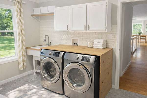 - Built-In Oven, Cooktop, Dishwasher, Disposal, Dryer, Humidifier, Microwave, Range, Range Hood, Refrigerator, Washer, Water Filter