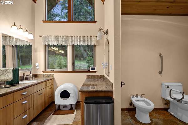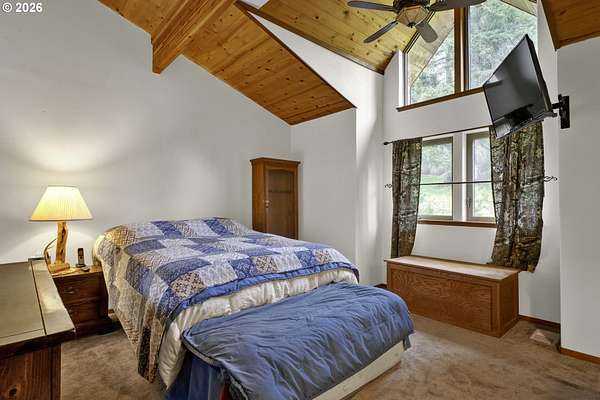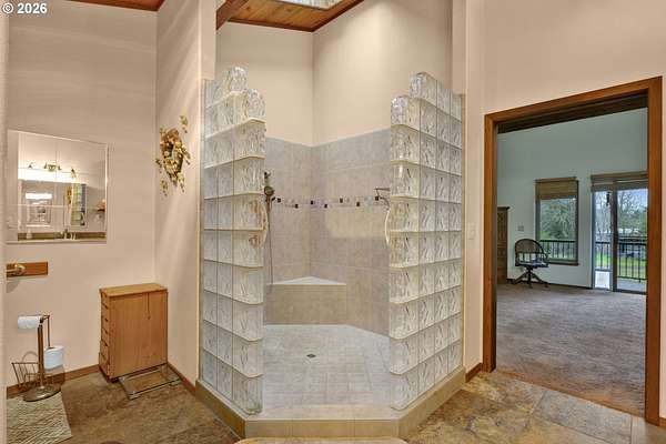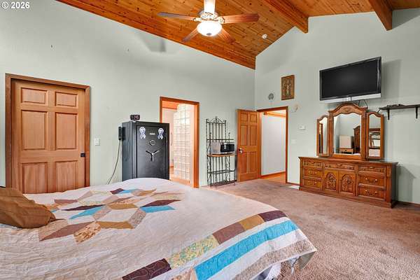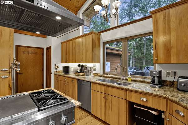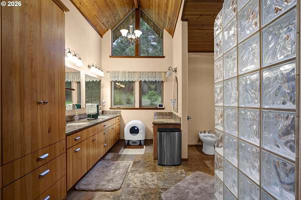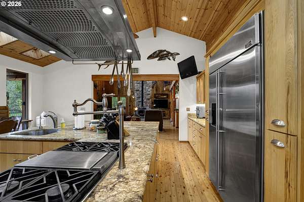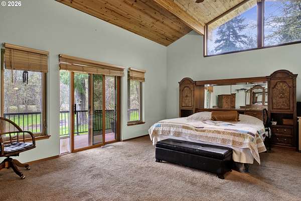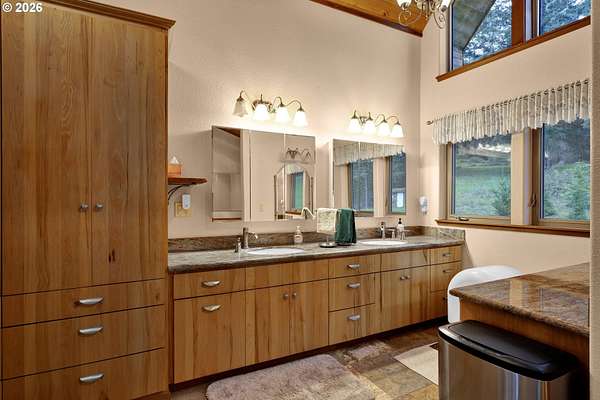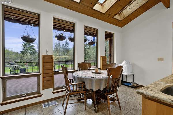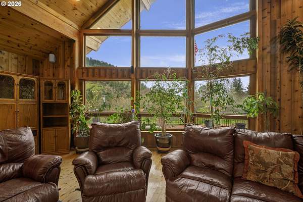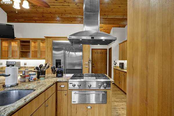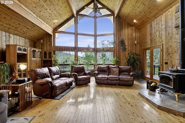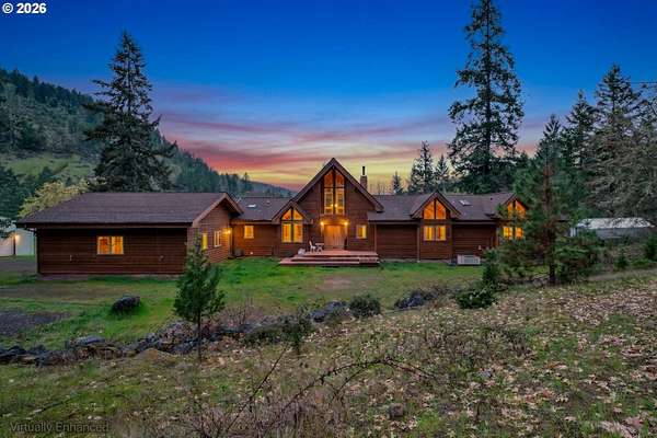Exquisite Lindal Custom Cedar home on 5 flat acres featuring a 2,400 sq ft shop with full bath, dual doors, and room for a 40' motorhome, plus 3 RV hookups (2 across the driveway) with power, water, and RV dump by the shop. The gourmet kitchen is a chef's dream with granite counters, dual sinks, pot filler, gas range with warming drawer, double ovens, hidden butcher block, and abundant storage, including a bar/dining area with separate prep sink. The primary suite features a walk-in closet, walk-in glass shower, and sliding glass door to the deck. Enjoy 2 HVAC systems, washer/dryer that stay, spigots for greenhouse irrigation, 216 sq ft deck with retractable awning, powered chicken coop, and wood shed with wood. A rare blend of luxury, functionality, and lifestyle-a must-see!