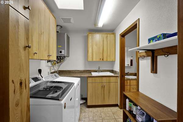 - Ceiling Fan, Central Vacuum, Garage Door Opener, High Ceilings, Hookup Available, Laundry, Skylight, Tile Floor, Wallto Wall Carpet, Washer Dryer, Wood Floors