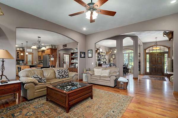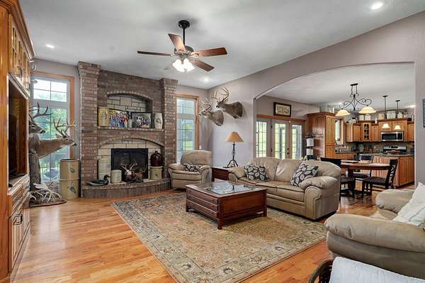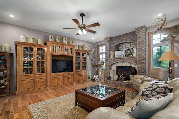 *HOME RECENTLY APPRAISED & PRICED COMPETITIVELY TO SELL* Escape to peace and privacy with this stunning nearly 25-acre retreat just minutes from Springfield! Tucked away from the road and surrounded by open skies and gently rolling land, this custom-built 4-bedroom, 2.5-bath home offers true seclusion with all the comforts of modern country living. Whether you're seeking a homestead, hobby farm, or simply a quiet place to unwind, this property delivers.Inside, you'll find a spacious, open-concept layout with 9-10ft ceilings, large windows, and a cozy gas fireplace that brings the living space together with a switch. The kitchen is the heart of the home--complete with a generous island, ample cabinet space, and views of the land beyond. The split-bedroom design provides privacy and functionality, with a large primary suite and a separate wing for guests or family. Many of the larger ticketed items--including roof, HVAC, water heater, have been updated so its move in ready (see addendum for the detailed list)!Outside, the property is ready for a variety of uses: a private river with plenty of fish for fishing, a private pond that is eight feet deep, its' own camping site, and an outbuilding--including a 40x70 insulated shop with a 16x70 overhang with concrete floors and its' own electric service, perfect for equipment, woodworking, or a home-based business. The home is served by its own private well and septic system, which keeps utility expenses at a minimum.Whether you're raising animals, starting a garden, or just soaking in the sunsets from the back porch, this home offers the space, peace, and privacy to live life your way. All of this located just a short drive from Willard schools, Springfield amenities, and Highway 160 access--giving you the perfect balance of rural privacy and convenience.