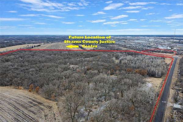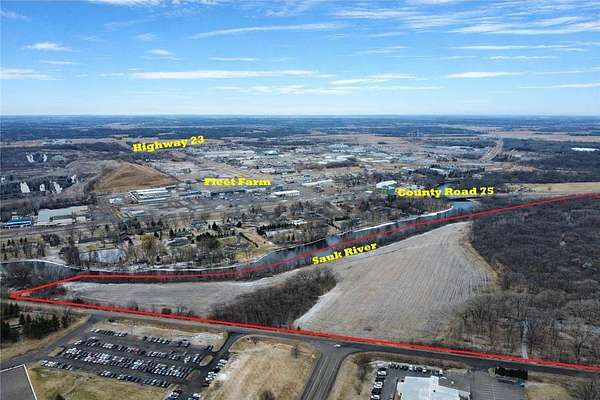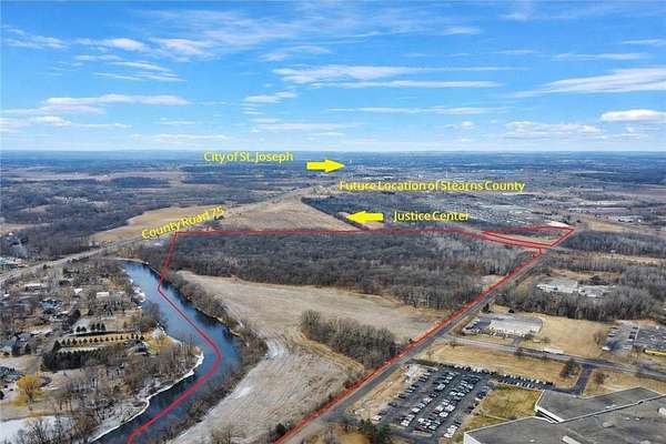 An incredible development opportunity featuring nearly 100 acres in a prime Sauk River location just moments away from St. Cloud / Waite Park, and minutes from St. Joseph. This expansive property offers tremendous potential for mixed-use development including Industrial, Commercial, or Multi-Family opportunities (subject to zoning approvals). Ideally positioned adjacent to the future Stearns County Justice Center, the site is poised to benefit from significant growth and infrastructure investment in the area. With convenient access, natural river frontage, and strong development potential, this property presents a rare opportunity for investors and developers to shape one of the area’s next major growth corridors. Disclaimer: Property lines in the pictures depicts approximate location of layout.