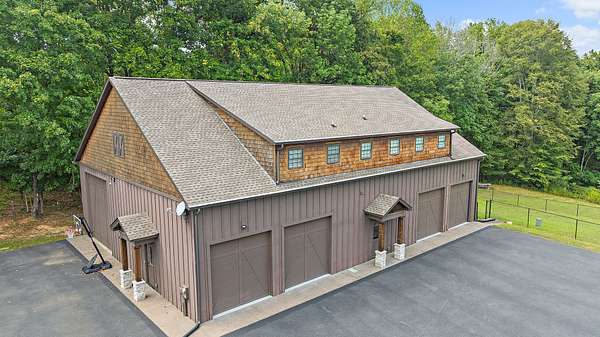 The property also includes a detached four-car garage with an RV bay, a dedicated "car wash" garage, and a fully equipped apartment on the second level -- perfect for guests or income potential. All of this sits on 10 pristine acres with a tranquil pond, offering unmatched privacy and beauty.