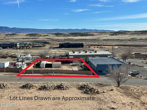 Fully fenced 0.50 acre commercial lot in Prescott Airpark area with no HOA Dues. Very easy build lot or just continue to use as a construction/storage yard. Parcel includes (3) 20ft storage containers, (1) 40ft storage container and (1) 40ft tractor trailer storage container; the contents currently inside containers is not included as part of the sale nor any construction equipment or other items currently stored on property. All utilities available at street, City Water, Sewer, Electric, Cable, Natural Gas. Property is currently used as a Construction Storage Yard - General Storage. Curb and perimeter Fencing were installed by Sellers and permits were obtained from City of Prescott. One Seller is a Licensed Realtor. Zoning is Commercial - Light Industrial (IL).