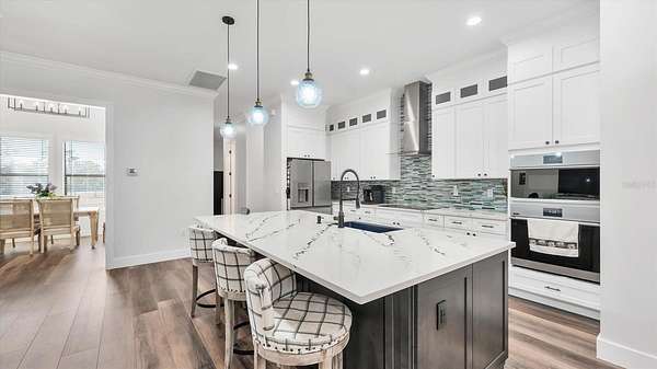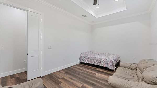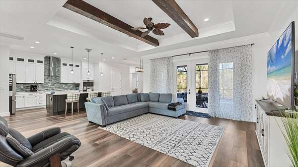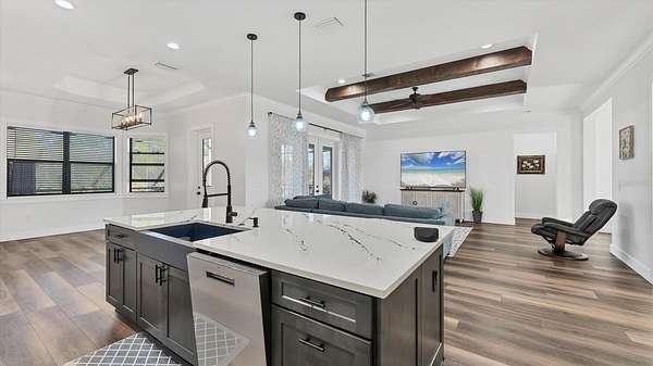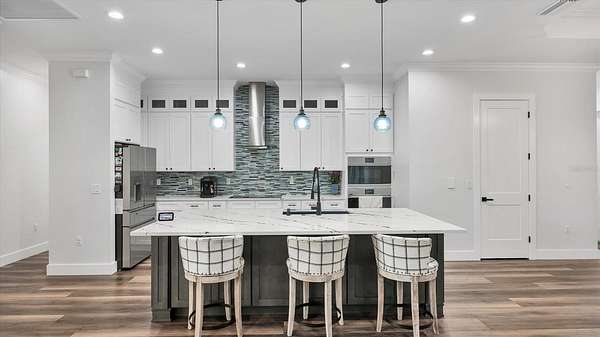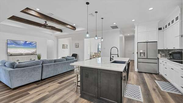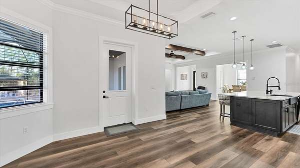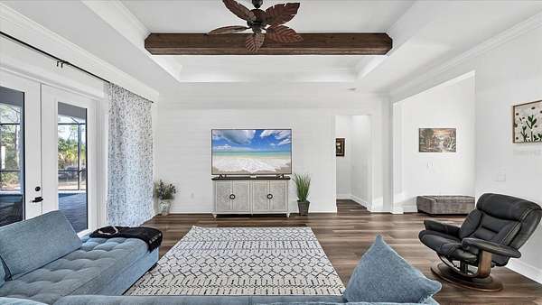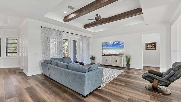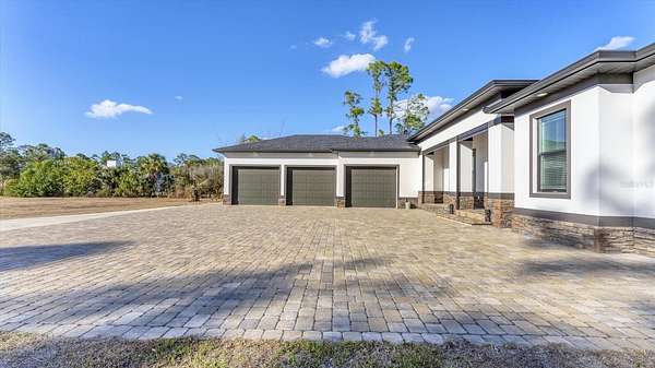 GOOD THINGS COME IN THREES - CUSTOM BUILT 3 BEDROOM 3.5 BATH 3 CAR-GARAGE POOL HOME ON 3.1 ACRES - Built in 2022, this luxury custom home is pristine and move-in ready now! With NO HOA FEES, NO CDD FEES privacy and room to spread out, you're going to love all that this beautiful North Port Estates home has to offer! Set deep into the lot, away from the street, a long driveway leads to this stately home. Beyond the home, you'll find a preserve-like wooded area including your own private pond. Rich-toned pavers take you to the entrance of the home, the 3-car garage and welcoming front porch. Step inside and experience the casual elegance this home exudes - soaring ceilings, luxury finishes, wood beam accents, luxury plank flooring throughout and custom tile in the bathrooms and laundry room. The chef inspired gourmet kitchen with large walk-in pantry features an expansive island with stunning quartz countertops, rich-warm cabinetry, ideal for entertaining. Stainless appliances include French-door refrigerator, dishwasher, built-in oven & microwave, range hood and drop-in glass cooktop. Timeless white Shaker-style cabinets to the ceiling with crown molding and beautiful tile backsplash complete the design. A FLEX ROOM currently being used as a formal dining room could also be used as an office or study. The split bedroom floor plan has the primary suite with bedroom, 2 walk-in closets and ensuite bathroom to the right of the home with the 2nd & 3rd bedrooms to the left side of the home. Each bedroom has its own ensuite bathroom and there's a LARGE BONUS ROOM ideal for a media room, game room or paired with one of the bedrooms to be used as a MOTHER-IN-LAW SUITE. Enjoy year-round use of the screened-in HEATED, SALTWATER POOL WITH SUNDECK & SPA. An outdoor shower, generous covered outdoor area and deck space are all part of what makes this home the ideal Florida home. The 3-bay garage has extra wide (10') doors to accommodate wide vehicles, overhead storage, insulated ceiling and an epoxy finished floor. Home features you'll appreciate include Impact Glass Windows & Doors o Crown Molding Throughout o Whole-house R/O System o Hurricane Shades for the Front Porch o Multiple Tray Ceilings o Oversized Water Heater o Over-sized 10' Wide Garage Doors o Insulated Garage Ceiling o Overhead Garage Storage o Prewired for Video Surveillance o Fruit Trees. North Port Estates residents experience the best of all worlds - country living with city convenience - the AG (agricultural) zoning allows for horses & farming. Just a 5-minute ride to I-75 and close to shopping, beaches, top-rated schools, airports and everything Southwest Florida has to offer!