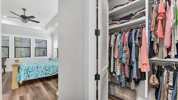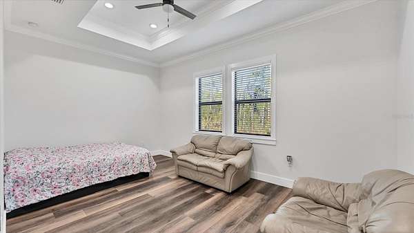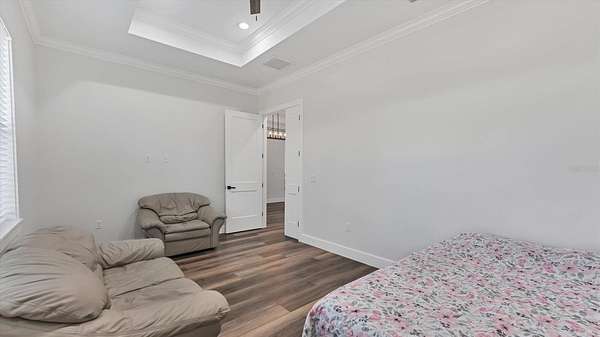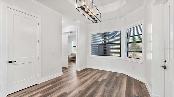 - Ceiling Fans(s), Coffered Ceiling(s), Crown Molding, Eat-In Kitchen, High Ceilings, Open Floorplan, Primary Bedroom Main Floor, Solid Surface Counters, Split Bedroom, Stone Counters, Thermostat, Tray Ceiling(s), Walk-In Closet(s)