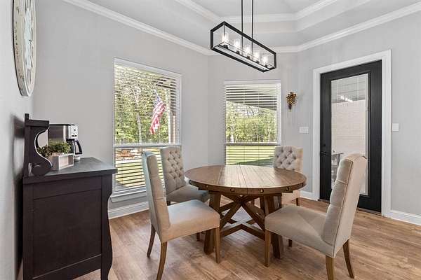 LAKEFRONT HAVEN + 2000sf SHOP nestled at the end of a quiet cul-de-sac in the quiet, coveted Nautical Shores community. This stunning 2023 Clements custom lakefront home sits on 2.15 acres with nearly an additional acre of SRA leaseback land. Perfectly positioned on the shores of Lake Tawakoni and adjoined by SRA-protected land, the property offers unobstructed views, rare privacy, and a front-row seat to the lake’s abundant wildlife.