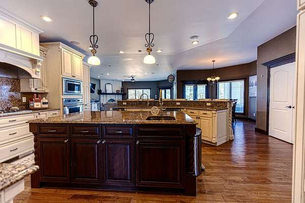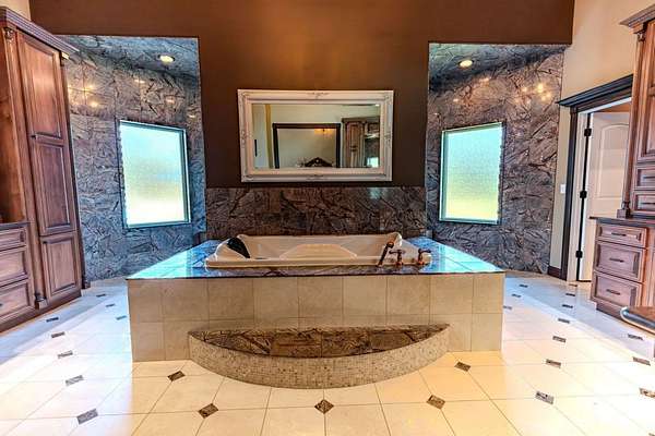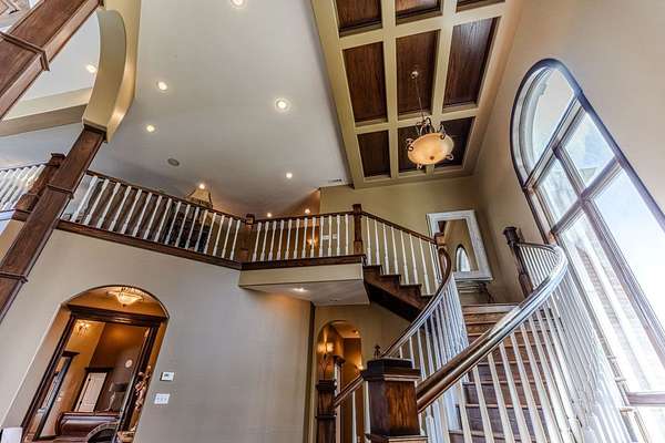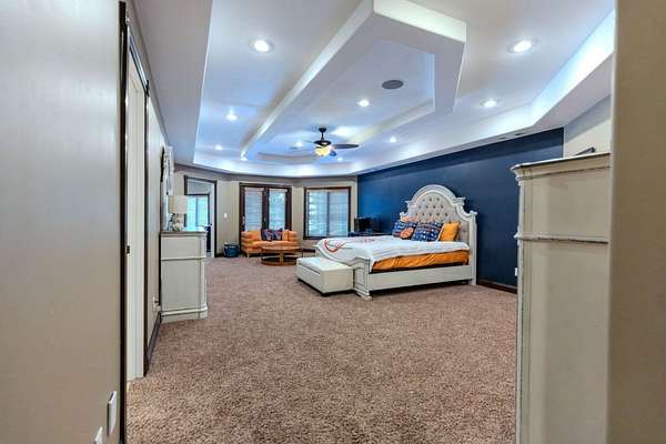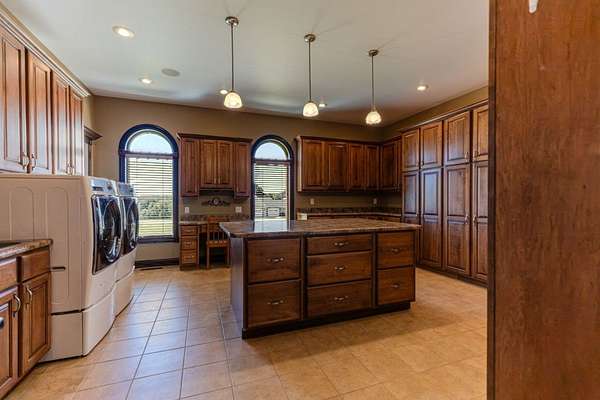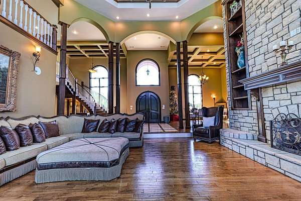 Dreams do come true! This extravagant home is available to be your Dream Home. Step through the arched doorways to a one-of-a-kind, custom-designed home located in Poplar Bluff, the heart of Southeast Missouri, and is an answer to all of your heart's desires. This magnificent, 5-bedroom, 6-bathroom (if you count the unfinished bathroom in the basement), Contemporary home had much planning put in the minor conveniences you never thought you needed or wanted. It was built with all the amenities including a custom kitchen, 3 living areas, breakfast area, formal dining room, coffee/wine area, 6 fireplaces, 3 laundry rooms, custom tray ceilings, 2 separate upstairs wings, 4-car, upper level, attached garage, and a 2-car, lower level, attached garage with all the storage you could possibly need. Upon entering, you'll immediately be in awe and take note of the unique, custom designed tray ceilings, 22 ft, massive, stone fireplace with surrounding bookshelves, and custom mantle.