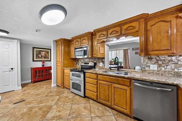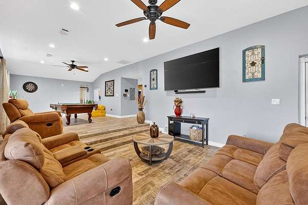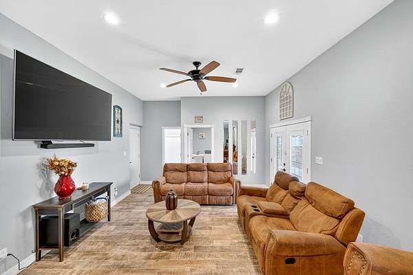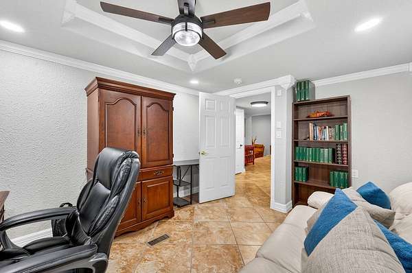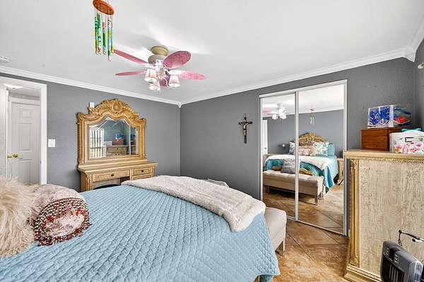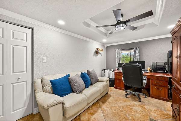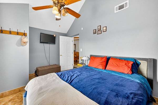 - Auto Garage Opener, Ceiling Fan(s), High Ceilings, Pantry, Reverse Osmosis-Owned, Security System-Leased, Tile Flooring, Water Softener-Owned