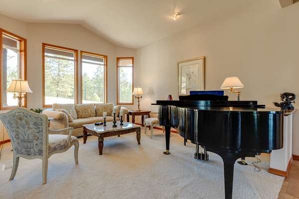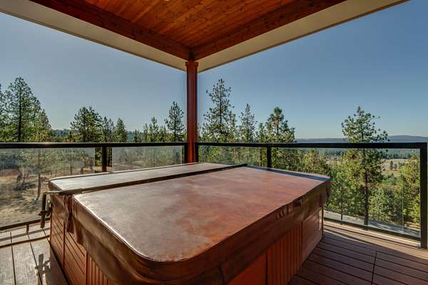 Experience refined Northwest living on 10 private acres in the gated community of Grandview Estates. This custom home is designed for both elegance and ease with 4 bedrooms, 4 baths, and a private in-law suite for extended stays. Expansive high and vaulted ceilings create an airy flow, while walls of windows frame sweeping territorial views, bringing the outdoors in. The chef's kitchen, complete with dual pantries and granite surfaces, anchors the heart of the home and opens seamlessly to formal and casual spaces, perfect for both intimate gatherings and grand entertaining. A see-through fireplace adds warmth and ambiance. The luxurious primary suite is a retreat of its own with a spa-inspired bath boasting an oversized soaking tub, a huge deluxe walk-in shower, and a private deck with hot tub. Designed for comfort and accessibility with wide halls, doors and no-step entry. Outdoor living is effortless with a generous full-length view deck, 60' RV pad, and oversized garage with room for a workshop.
