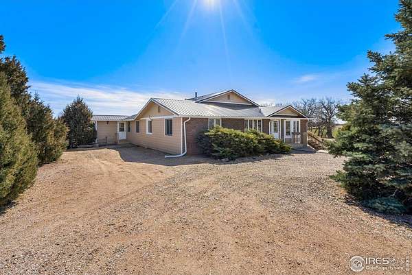 Backing to a privately owned meadow, this beautiful 3953 sq. ft. ranch on 35 acres with a finished walk out basement has 4 bedrooms and 5 baths. The interior and exterior of the home have been freshly painted. Warm wood floors accent the main level with a country size kitchen that has a breakfast bar and a walk-in pantry. The spacious great room has a farmhouse vibe with painted wood wainscoting and beautiful views of the mountains to the west. A main level primary suite has a soaking tub and walk-in shower along with new flooring. The finished walk-out basement has a bedroom with a private 3/4 bath, large rec room that has a new bay window, new luxury wood plank flooring throughout, a mud room with a 1/2 bath conveniently located by the entrance to the oversized 3 car garage, and two large storage rooms with shelving. The home is serviced by Northern Colorado water, Poudre Valley REA electric and propane. The home has a geo-thermal heating system for energy efficient heat and hot water. Enjoy summer evenings on the large wood deck with a walkway that leads to the front of the home. Work on your projects or store your equipment in the 3100 sq.ft. insulated shop with a wood heating system, propane heater, 220V outlet and water service with a 10-gallon hot water heater. Two sheds add additional storage. Bring your horses and enjoy a 200' x 400' roping arena, fenced pastures with 3 auto-waterers, and 3 water hydrants. There is no HOA or Metro District. Private, country location only 15 minutes to Old Town Fort Collins. Easy to show!