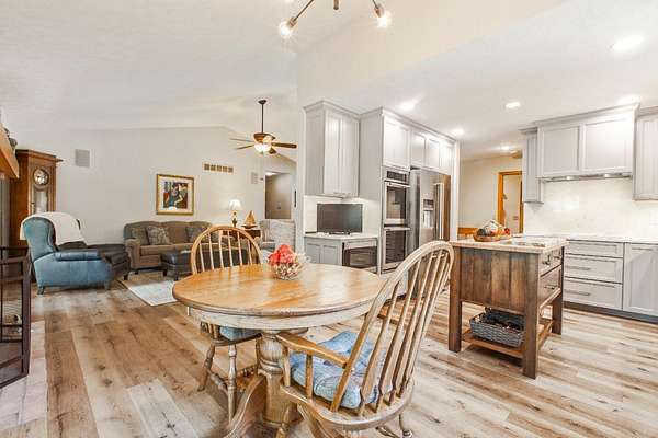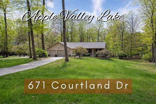 Spacious ranch ''FOR SAIL'' on the highly desired Courtland Drive in Apple Valley. Beautifully positioned on two golf course front lots with a seasonal stream. The park-like setting offers over 1.6 acres of beauty and, despite its golf course frontage, remains very private. The U-shaped drive and covered front porch create a welcoming approach to the home, complemented by an attached 3-car garage with a built-in workshop area. Inside, you're greeted by a huge living room with a gas fireplace and a fully windowed (Newer windows) 3-season room with lovely park like views. The remodeled kitchen features a moveable island, stainless appliances, and double oven. The main level also includes first-floor laundry with cabinets and utility sink, half bath, two guest bedrooms, a full bath, and a spacious owner's suite with private bath, walk-in closet, and walkout access to the 3-season room. The lower level is impressive, offering a large open area with a wet bar, wood-burning fireplace, additional bedroom, half bath, and ample storage. This home has only had two owners and has been lovingly maintained and updated throughout. Kitchen-2023, Roof-2020, HVAC-2017, HWT-2017.