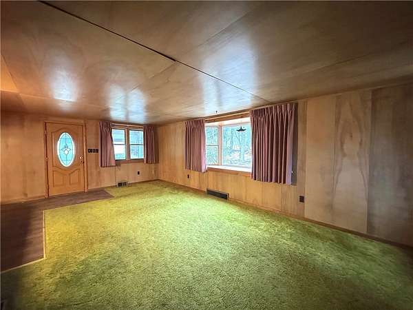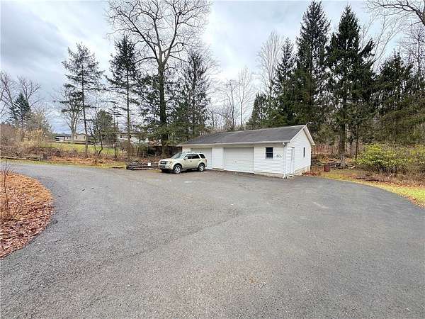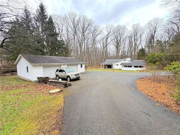 You've found it! The peace, quiet, and pure space of country living all while having the convenience of nearby amenities. This gorgeous 2.7 acre lot features stunning, brush-free woodlands, a babbling creek, and absolute privacy. An oversized garage with separate electric and a huge, paved driveway complete the perfect outdoor space. A cozy front porch greets you as you make your way inside to the simple ranch layout. The suitably sized main room provides plenty of light, a fireplace, and adjacent access to an island primed for dining. Sight lines into the kitchen offer a panoramic view of the sweeping countertops and abundance of cabinets. Newer appliances dazzle before entering the designated dining area. A few steps away is the spacious sunroom, fantastic for three-season relaxing. On the alternate side awaits the aptly sized bedrooms including one with a full en suite. A second full bathroom serves as the communal resource while the upstairs entry gives way to an additional space great for gaming or office work. Completing the interior is a clean basement with laundry and exterior access. This is your chance to enjoy the serenity and acreage of the country without compromise!!