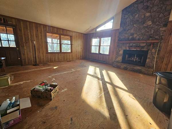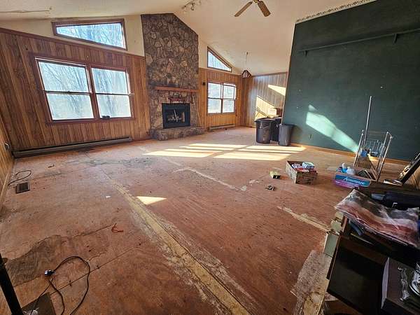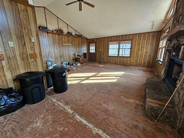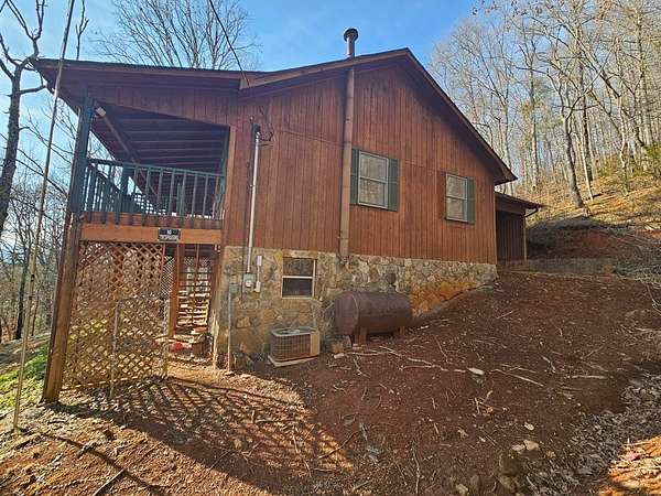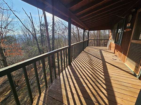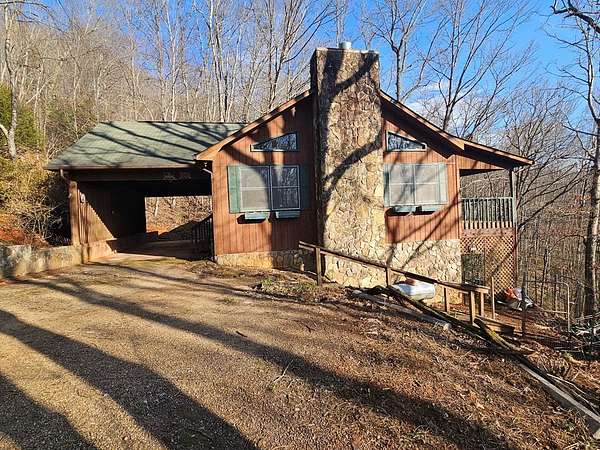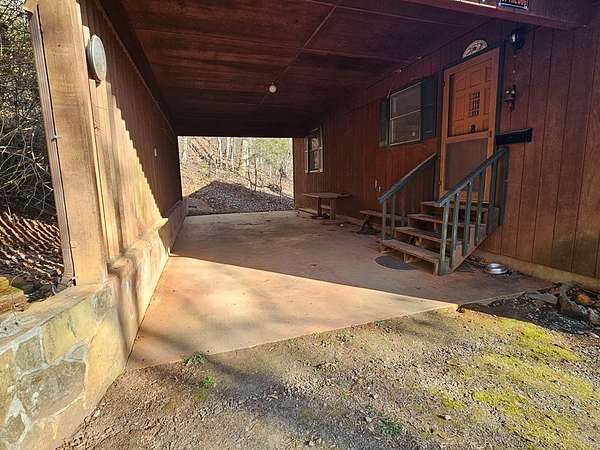 Rustic mountain cabin with classic charm and tons of potential! This home features a vaulted living room with a floor-to-ceiling stone fireplace, wood-paneled walls, and large windows that bring in natural light and wooded views. Enjoy the peaceful setting from the spacious covered deck, perfect for relaxing in the mountains and enjoying your view. The property also includes a covered carport for convenient parking and easy access to the home. With some updates and repairs, this cabin could be transformed into a beautiful mountain retreat, full-time home, vacation getaway, or investment opportunity. Bring your vision and make it your own!