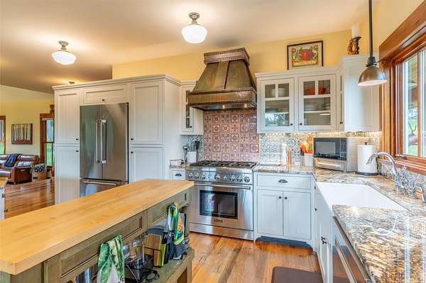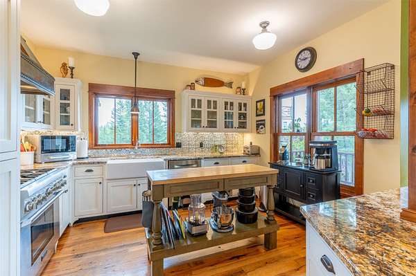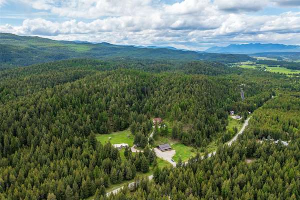Tucked away in a serene 20 acre timbered Montana oasis, this property features a 3+bd / 3 ba modern farm house, a 4 bd/2 bath guest home, and a beautiful 52' x 52' shop w/radiant floor heating. The main home is a character filled classic with sunny rooms, great views, and high end finishes including granite counters, wood floors, custom doors & cabinetry, and exquisite tile and stonework. The versatile shop could be a business owner's new basecamp, venue for functions, or a hobbyist's haven. Located in the sweet spot bordering forest service and between country living and city amenities, it's just minutes from adventures like Glacier National Park and Whitefish Lake. Two wells, 2 septics and water rights, including irrigation, add to the property's unique appeal.