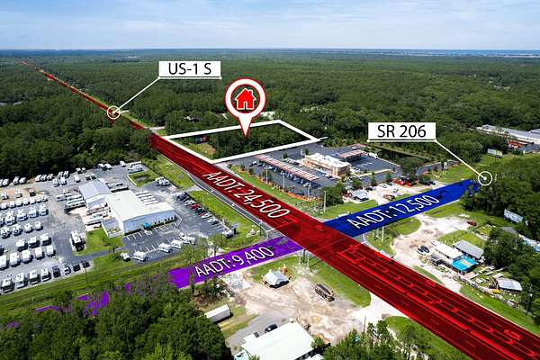 A Prime Commercial Location In St. Augustine With Superior Visibility In This High Growth Corridor! 312 Feet+/- Of Frontage On The East Side Of Us 1 South! This Site Contains A Total Of 2.26 Acres And Is Located In The Us1 Mixed-use Commercial Corridor,And Its Commercial General (cg) Zoning Allows For A Variety Of Future Commercial Uses. Situated Adjacent To A Recently Constructed Circle K And Located Only 4 Miles From Crescent Beach And 2 Miles To I-95. Surrounding Properties Include An Established Rv Dealership,St. John's County Public Library,Large Gas Station,Bbq Restaurant And Neighborhood Retail. Aadt Shows 24,500 Vehicles Per Day On Us 1 And 10,000 At Cross Section Of Sr 206. There Is An Existing Billboard With A Lease In Place For Additional Income Of $600/Mo.