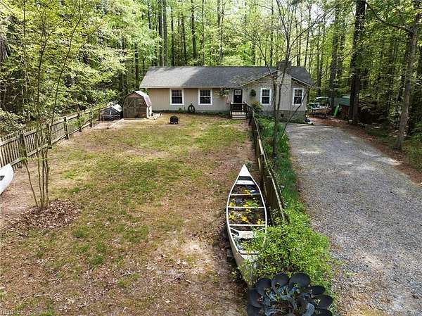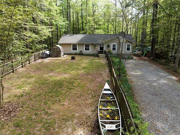 If you are looking for a 1-story rancher with lots of privacy, updated, and move-in ready, you are in the right place. Freshly painted open floor plan with 3 bedrooms, 2 full bathrooms, just 10 mins from Gloucester Courthouse and 25 mins from the bridge. Step out back on your deck and enjoy the quiet that comes along with your 2.3 low-maintenance acres with the optional chicken and 24x12 saltwater pool that is 52" deep with an Intex steel frame. Stream runs along the back side of the property and already has a 2-person deer stand waiting for you. Lots of storage options with a 16x12 ft shed/workshop and a dog kennel. Kitchen and baths were renovated in 2021. The wood-burning fireplace has a new chimney liner, cap, and flue. Come check out this piece of paradise just waiting for you.