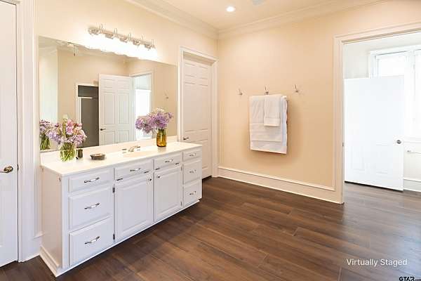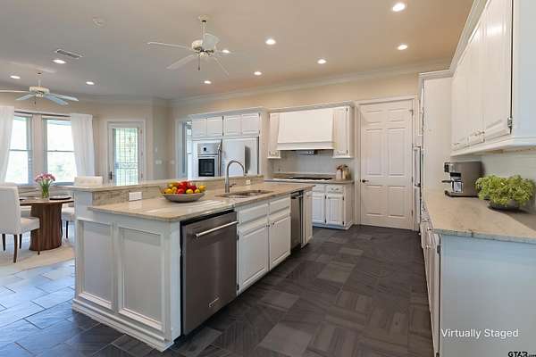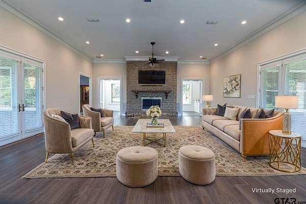 Welcome to Still Waters at Dogwood -- a private estate where luxury, serenity, and architectural elegance meet Introducing an extraordinary estate that redefines luxury living -- Still Waters at Dogwood. Nestled on 7.08 picturesque acres in the exclusive Dogwood Lake Estates, this stunning 8,985 sqft residence offers a rare blend of grand scale, refined finishes, and tranquil privacy, complete with two private lakes and dual docks that create a true retreat. Designed to accommodate multi-generational living, this 5-bedroom, 6 full bath, and 2 half bath home features two private primary suites on the main level -- perfectly suited for extended family or in-law accommodations. The thoughtfully designed upstairs includes a convenient kitchenette, offering added independence and flexibility for guests or family. Fresh paint, new flooring, and soaring windows flood the home with natural light, while the elegant entryway chandelier and designer light fixtures elevate the home's sophisticated ambiance. The beautifully updated kitchen features new marble countertops, and the spacious laundry room is designed to accommodate two washers and dryers for ultimate convenience. A fully finished basement, two private offices, and a hidden room further enhance the home's unique offerings. Outdoors, enjoy peaceful mornings or sunset gatherings on the private docks. Stillwaters at Dogwood is a true legacy property -- offering exceptional privacy, thoughtful design, and timeless elegance. Some photos have been virtually staged to help illustrate design possibilities and furniture placement.