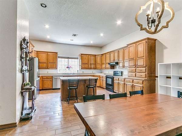 Tucked at the end of a quiet cul de sac, this property offers the kind of space and flexibility that is getting harder to find. Sitting on 5.16 acres with a canopy of mature trees, it feels private without being isolated, and there is room here to actually use the land the way you want to. The main home features 3 bedrooms and 2 full bathrooms with a layout that centers around a large, comfortable living room. It is the kind of space that can handle everything from everyday living to hosting a full house without feeling crowded. The kitchen is just as impressive in size, lined with an abundance of cabinets that give you storage for days, along with plenty of workspace to spread out. One of the more unique features is the hot tub room located just off the primary suite. It creates a separate space to unwind at the end of the day without ever stepping outside. The primary suite itself offers a tucked away feel from the rest of the home, giving it a bit more privacy. On the west side of the home, there is a fully equipped mother in law suite complete with its own living room, full kitchen, bedroom, and full bathroom. Whether it is extended family, guests, or even the potential for rental income, this setup gives you options that most properties simply do not have. Outside, the metal shop building with a garage door adds even more versatility. It is ideal for projects, storage, or anyone who needs a functional workspace on their own property. The front patio provides a great spot to sit and take in the peaceful setting, surrounded by trees and open space. Inside the home, you will find no carpet at all, only tile and laminate flooring throughout, making maintenance simple and keeping things clean and durable over time. This property is all about usable space, inside and out, with a layout that adapts to real life. It is not just a house, it is a place where you can spread out, settle in, and make it your own.
