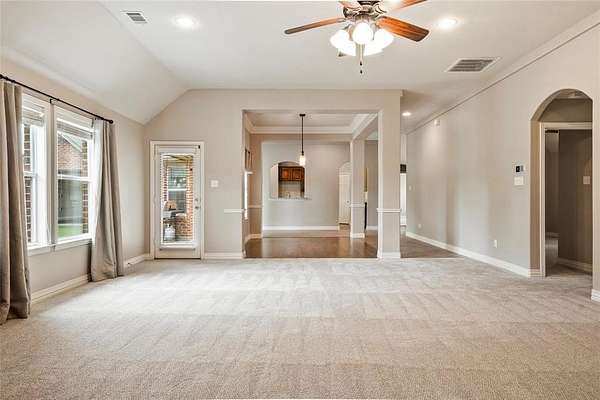 Get out of the hustle and bustle of city life and experience spacious country living at 6713 Mustang Trail. Situated on a private 2-acre lot in the highly desirable North Fork Estates of Krum ISD. This single-story brick ranch style house features 2,633 square feet of living space, including three bedrooms and two bathrooms, with a layout that incorporates both traditional and updated elements.