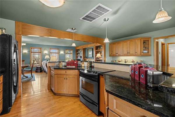 Pride of ownership and thoughtful design define this one-of-a-kind custom-built home, created and meticulously maintained by its original owner--a professional builder known for quality craftsmanship. Constructed with 8-inch of concrete walls and 2 inches of polystyrene insulation sandwiched in the center, and a durable stucco exterior, this property offers exceptional strength, efficiency, and long-term value. Perfect for multi-generational living or an owner-occupied investment, the home features three full kitchens and laundry rooms--one on each level--offering unmatched flexibility for extended family or rental income. The brand-new geothermal heating system provides outstanding comfort with up to 60% energy savings, complemented by numerous recent updates, including a new roof in 2023, outbuilding roof in 2024, special stucco paint and new lower-level kitchen counters in 2025, and a freshly epoxy-coated main garage floor. Car enthusiasts or hobbyists will love the heated 2.5-car attached garage and the second heated 2.5-car spancrete garage for additional storage or workshop. Set on 5 picturesque acres with fruit trees and plenty of open space, this property is one of the closest in areas to the metro that allows raising horses, alpaca, or other domestic animals. Additional highlights include a water filtration and reverse osmosis system, in-floor heat in the lower level, garage, and outbuilding, plus a 24x20 heated, 400-amp service, insulated barn with an elevator-accessible second story and an additional asphalt pad for RV or boat parking. A rare combination of craftsmanship, versatility, and peaceful country living--all within easy reach of the metro.