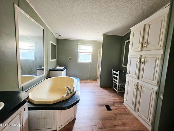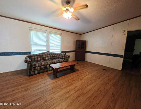 Private Crockett county living on 2 full acres! 2 barns plus a work shed. With partial fencing and no restrictions, the possibilities are endless. Mature trees and plenty of space for a garden and/or mini hobby farm. House is a spacious 1680 sq ft with over sized bedrooms and closets. Dinning area and sit down bar. The master suit features a huge bathroom with soaker tub, separate shower, 2 vanities and powder area. Separate laundry room. New flooring throughout approx. 4 years ago, HVAC regularly serviced, gas fireplace. Beautiful sunset views from the back porch. This little slice of paradise is waiting for it's owners to breathe fresh life into this cozy little farmstead. 100% financing approved. Warranty included.