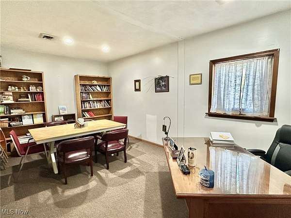 Outstanding opportunity for investors, developers, or institutional users. This expansive property,currently used as a church, is situated on 5.74 park-like acres with mature landscaping, open green space, a playground, and covered shelter. Built in 1983 and well-maintained, the nearly 10,000 sq ft building is ideal for a wide range of commercial or community-based uses such as a school, daycare, event center, worship facility, or nonprofit headquarters. The layout includes a full-size gymnasium, large sanctuary/auditorium, multiple private offices, classrooms, nursery, community/multi-purpose room & kitchen. Infrastructure highlights include 3 furnaces (one replaced in 2023), new smart thermostats, updated water heater, newer refrigerator and restrooms with new toilets. Oversized parking area and open land provide room for future expansion or redevelopment. Buyer to verify zoning use. Flexible use potential - ready for it's next chapter.