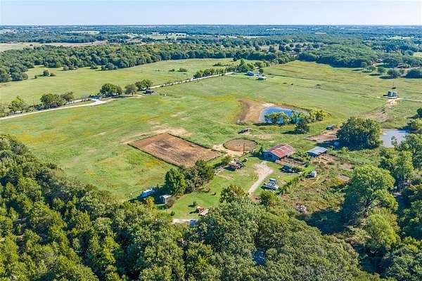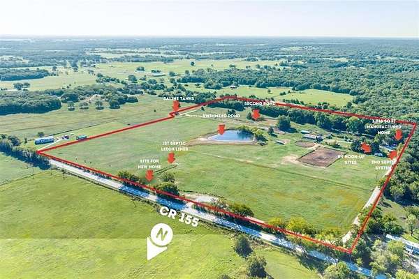 The land is fully fenced and cross-fenced, with a small lean-to in the front pasture and a larger one in the back for added utility. Additional features include a storm shelter, fruit trees, a portable shed, two dog runs, and an RV hookup with dedicated electric and water access. Two stocked ponds add both beauty and function to the landscape.