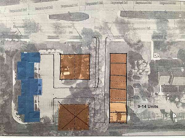 This Vacant 0.41 Acrea Lot (86' x 204') to be purchased together with 6735-6749 Raymond Rd - 8 units townhouse building See MLS#2007723, which has the lot size 0.89 Acrea 190' x 204'. Together various options of redevelopment could be achieved with creative planning. See the seven (7) options proposed by an architect provided in the photos of the MLS.