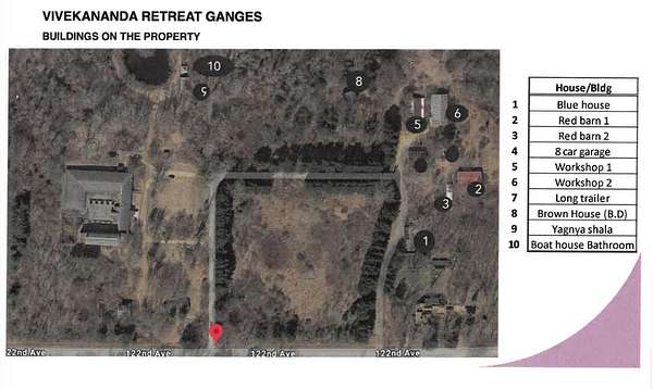 Just east of Blue Star Highway on the north side of 122nd Ave. Enter property where the retreat center signage is located.