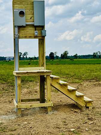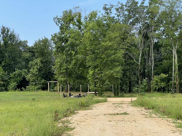 - Improvements: Custom anchored firepit, deck, extra large swing, twinkle light poles, storage bin, gravel driveway + large pad, culverts and water and electric RV hookups already installed!