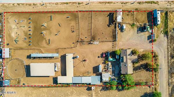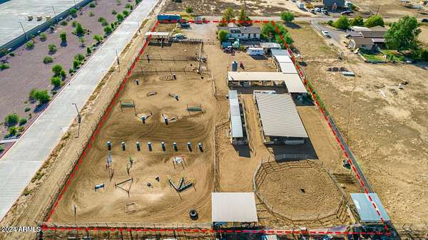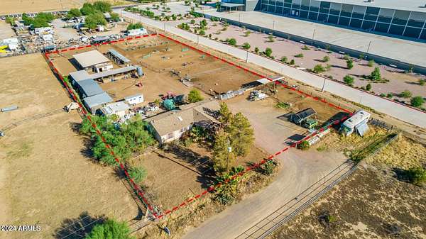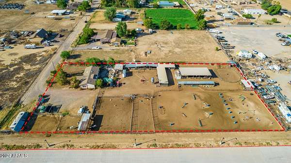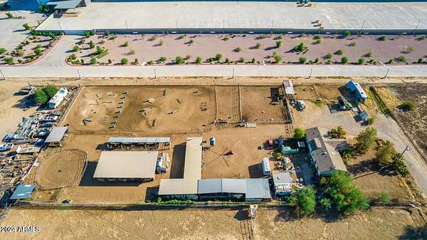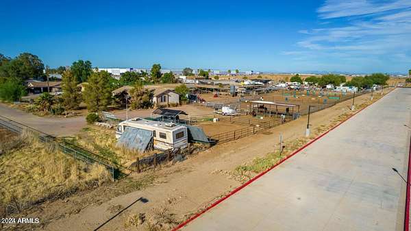 Prominent 303 Corridor location with amazing developmental potential. The fast growing 303 Corridor boasts industries such as Amazon, Walmart, Best Buy, FedEx, & UPS. This esquestrian property is located less than a mile from state route 303 and currently is being used as a boarding & lesson facility with an established client base. Three bedroom/two bath manufactured home. Property includes 29 large, covered stalls, multiple turnouts with shades, large lit round pen, four horse motorized hotwalker, two tack rooms, & a five-ton pellet bin. No HOA