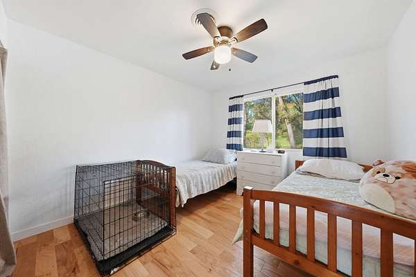 Move-in ready country homestead on 3.04 acres with Stillwater Creek frontage and peaceful surroundings. This 3-bedroom, 2-bath home offers 1,851 sq ft with a functional floor plan including a large living room, separate dining area, and cozy family room. Recent updates include a newer roof (5 yrs), well pump (4 yrs), brand new HVAC, and water heater (3 yrs), along with fresh interior paint and updated flooring--engineered hardwood throughout most of the home with newer tile and LVT in bathrooms and pantry. Kitchen updated within the last 5 years. Master bath fully remodeled; guest bath recently updated. Property is set up for a homesteading lifestyle with a fully established organic garden, strawberry bed, and herb planters (thyme, oregano, rosemary, mints, echinacea), plus a variety of fruit trees including olive, cherry, mini peach, Asian pear, and lemon. Cross-fenced with 6 animal pens, chicken coop, and multiple animal shelters (goat/sheep/pig). Two storage sheds included. Backs to creek and open grazing land for added privacy and scenic views. Solar helps reduce energy costs.