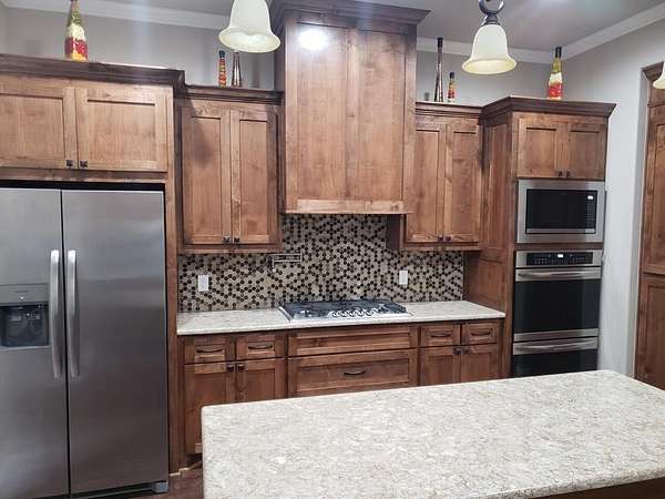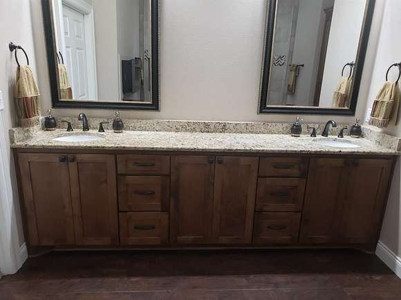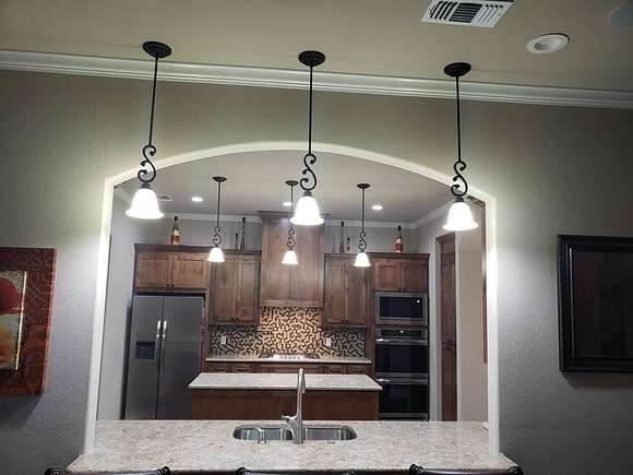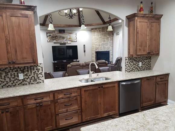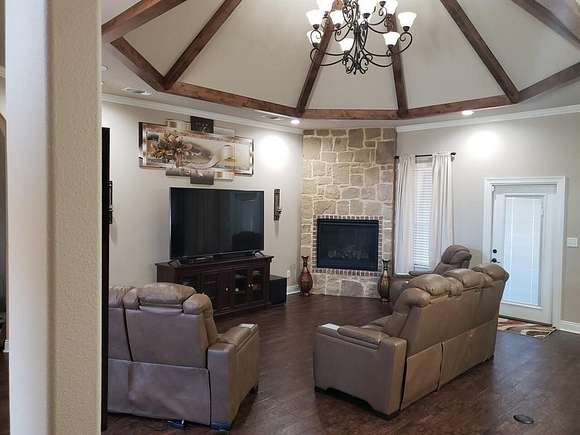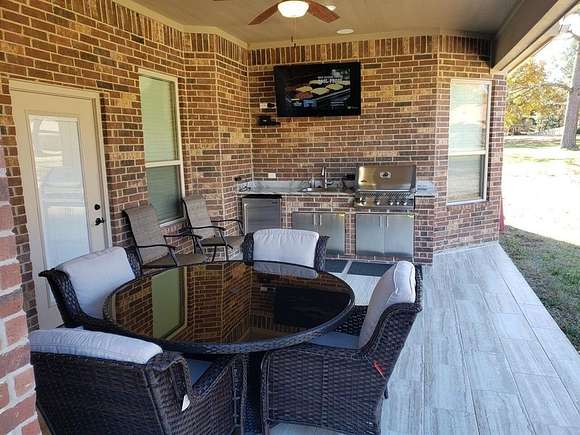 Stunning 2022 custom built home with 4 bedrooms, 4 baths and 3 car garage in the prestigious neighborhood of Dogwood Estates in Texarkana, Tx! Great place to call home with peace and serenity! Owners spared no expense on upgrades. 3900 square feet on 2.415 acres. Outdoor tile front-back porch. Beautiful lake view from front porch with beautiful sunrises. Dome vaulted ceiling with an elegant 15 light chandelier stone gas fireplace. Surround sound living room-back porch. Each bedroom has its own full bathroom and large walk-in closet. Walk-in shower in powder bathroom. Elegant dining area to enjoy family and friends. A cook's kitchen with granite countertops-island with gorgeous backsplash. Double ovens with built in air fryer. Custom-built cabinets. Master bedroom is a couple's oasis with a fireplace in the master bedroom and bathroom, whirlpool tub, huge walk-in shower. A full outdoor kitchen with natural gas hookup. Business center. Tankless water heater. All furniture negotiable.