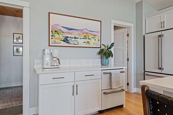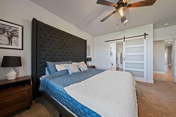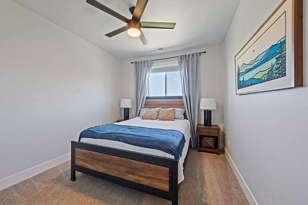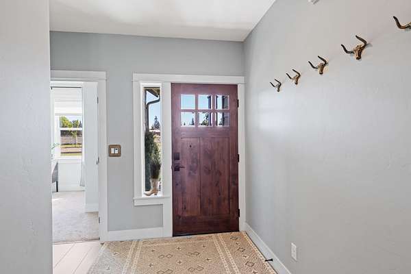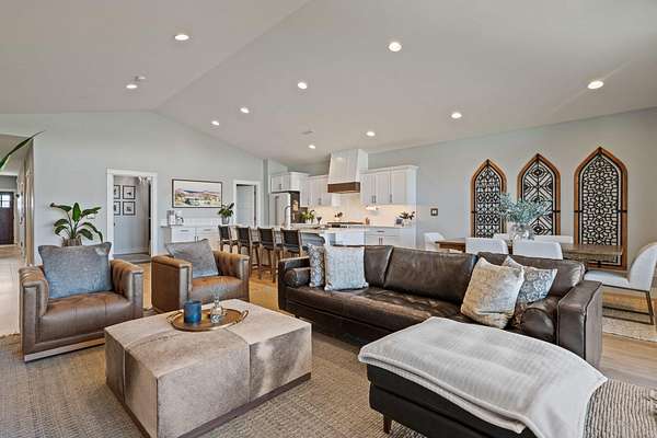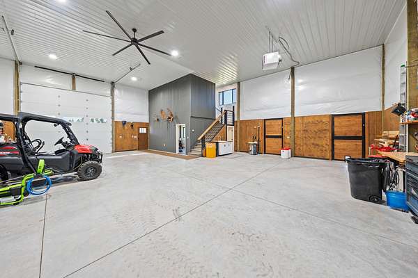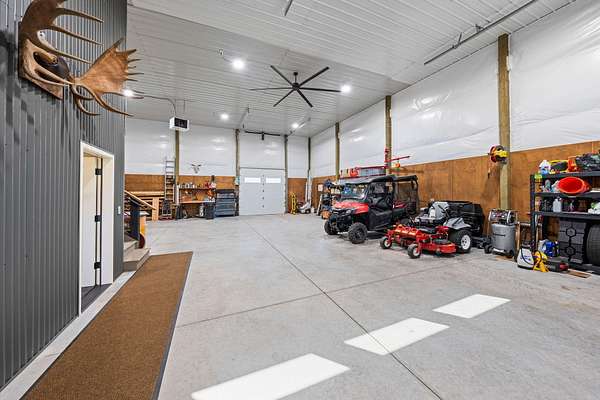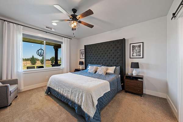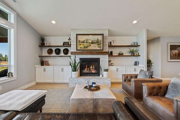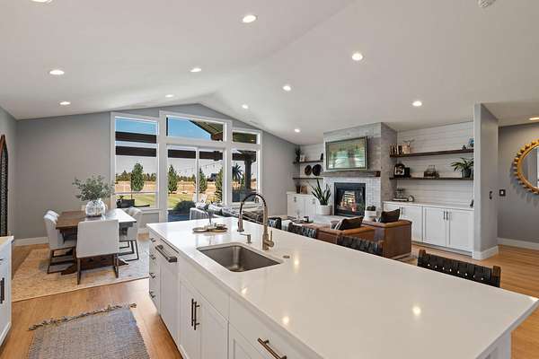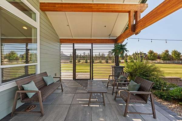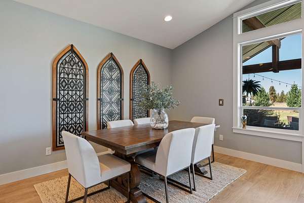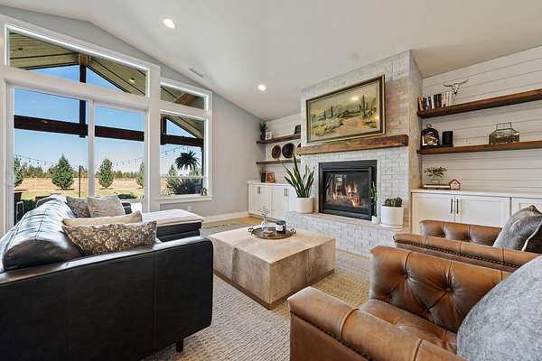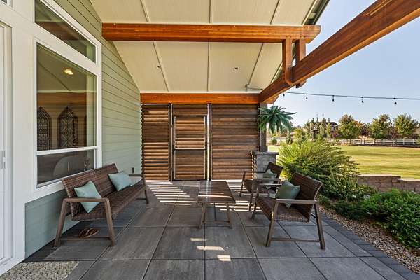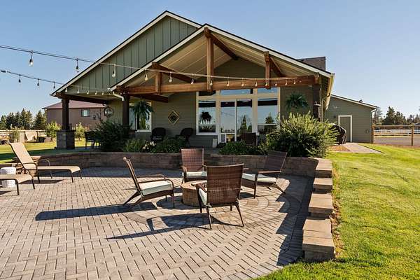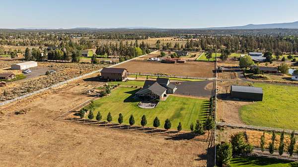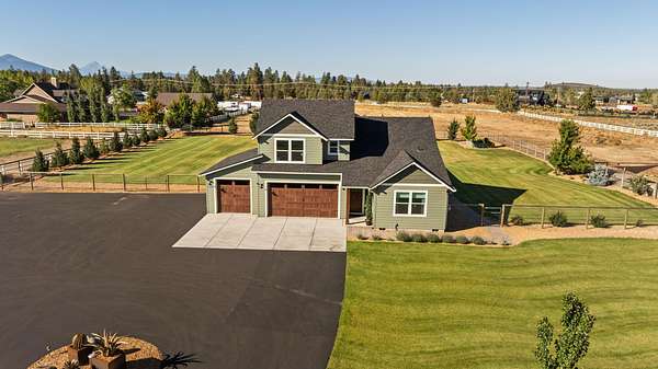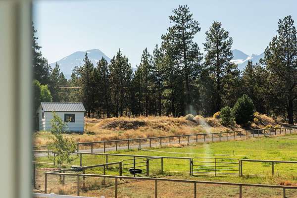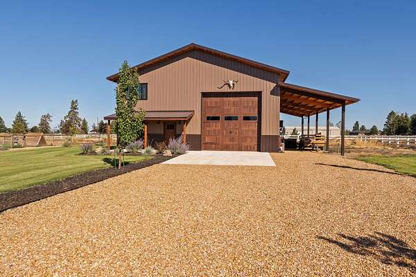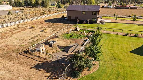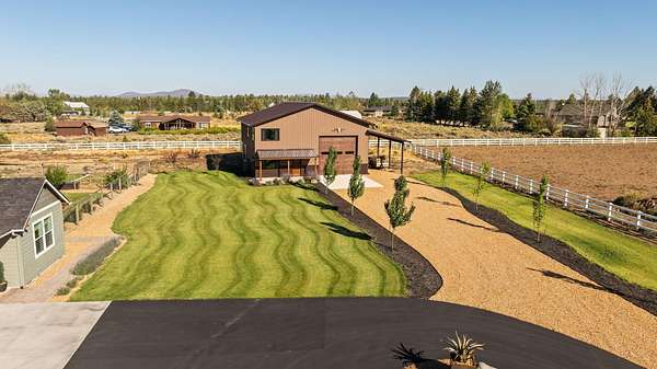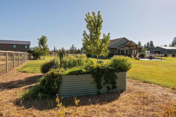 Extensively updated, this 5.23-acre property with 4.8 ac of deeded water rights offers a rare blend of modern comfort, functional outbuildings, and thoughtful outdoor living. Recent improvements include new interior & exterior paint, upgraded garage doors, and expanded landscaping with over 1,500 sf of underground-irrigated lawn complemented by dozens of newly planted trees, a gated backyard, and full perimeter fencing. Custom pathways connect multiple outdoor living spaces, including a covered patio and a paved terrace with a gas fire pit: ideal for entertaining. A 2024 40'x48' insulated and heated shop adds exceptional flexibility, featuring a bathroom, gym area, office, 14' RV door, full RV hookups, and infrastructure ready for horse stalls. The vaulted plan is filled with natural light and showcases expansive windows and a spacious kitchen with quartz counters, full tile backsplash, large island, and GE Cafe appliances. Experience elevated living at this truly picturesque property