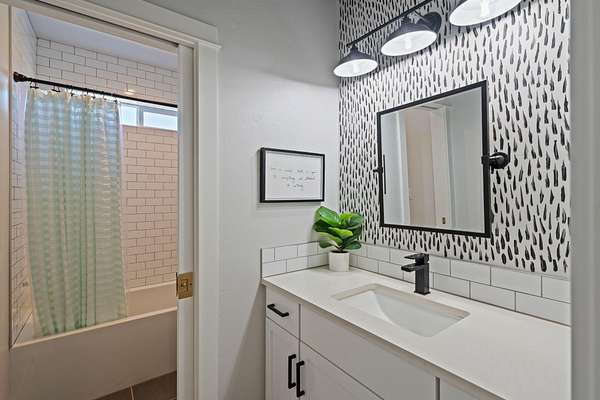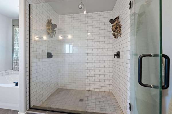 - Breakfast Bar, Built-In Features, Ceiling Fan(s), Double Vanity, Enclosed Toilet(s), Kitchen Island, Linen Closet, Open Floorplan, Pantry, Primary Downstairs, Shower/Tub Combo, Solid Surface Counters, Tile Shower, Vaulted Ceiling(s), Walk-In Closet(s)