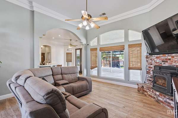 Experience refined country living in the heart of Choctaw Valley. This exceptional horse property features a beautifully appointed 3-bedroom, 2.5-bath home set on 2.51 scenic acres with sweeping hillside views. Recently refreshed with a freshly painted exterior, the home offers stunning curb appeal and lasting value. Inside, wood-look flooring flows throughout an inviting layout designed for both comfort and entertaining. The updated kitchen showcases quartz countertops and opens to a stunning great room ideal for gatherings. The primary suite offers a spa-inspired retreat with a tiled walk-in shower, dual vanities, and a relaxing jetted tub. Outdoors, enjoy resort-style amenities including a gated infinity pool with panoramic views, a solar-covered patio for year-round comfort and energy efficiency, an oversized two-car garage, and dedicated RV parking w/hookups. A rare opportunity to own a private retreat with luxury amenities and breathtaking surroundings schedule a showing today!