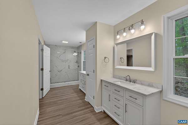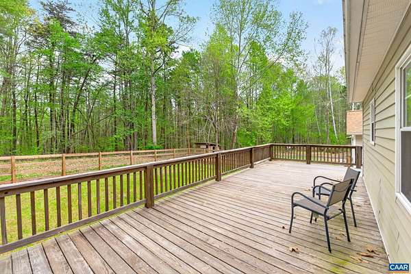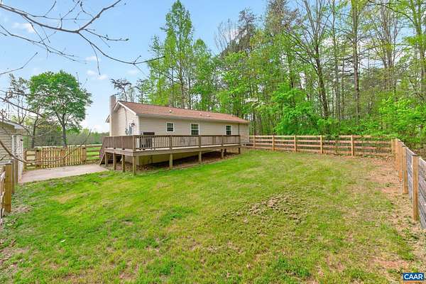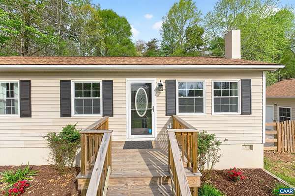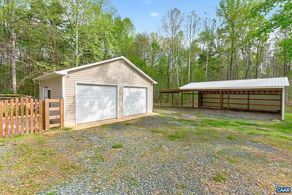 Tucked off the road in a private Fluvanna County setting, this beautifully updated home offers the perfect blend of space, comfort, and modern upgrades. Thoughtfully renovated throughout, the highlight is the stunning new primary bath addition—enhancing both square footage and functionality—with dual vanities, a spacious glass-enclosed shower, and gorgeous custom tile. Additional improvements include a new fence, LVP flooring, fresh interior paint, a fully updated kitchen with granite countertops, and a stylishly renovated hall bath with tile finishes. Updated lighting throughout adds a bright, cohesive feel. The crawl space has been fully encapsulated and includes a dehumidifier, providing added efficiency and peace of mind. A standout feature is the detached two-car garage with newer doors and a mini-split system—perfect for year-round use, whether for vehicles, hobbies, or projects. An additional large equipment carport offers excellent storage for tools, machinery, or outdoor gear. Enjoy outdoor living on the spacious rear deck overlooking the peaceful, private surroundings. Ideally located between Charlottesville and Richmond, this property offers both convenience and a true sense of retreat.