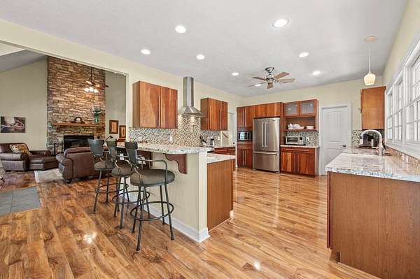 - Ceiling Fan(s), Open Floorplan, Pantry, Primary-Lower Level, Split Bedrooms, Vaulted Ceiling(s)
